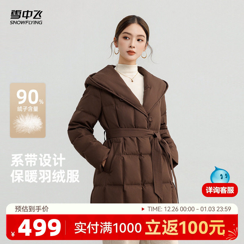 雪中飞2025冬新款羽绒服女士收腰系带高智感时尚气质高级百搭修身