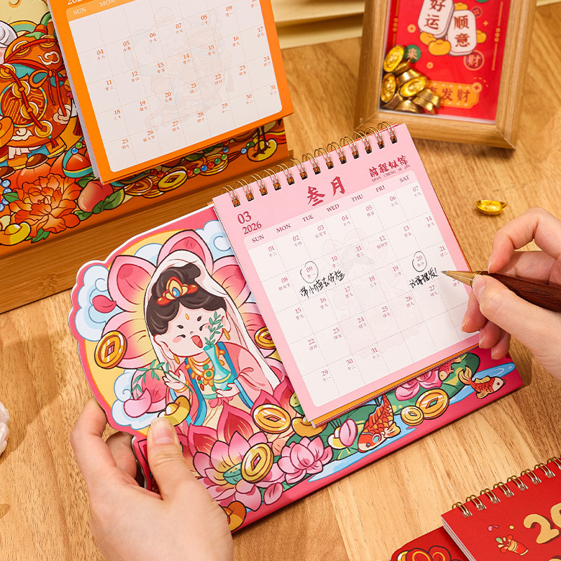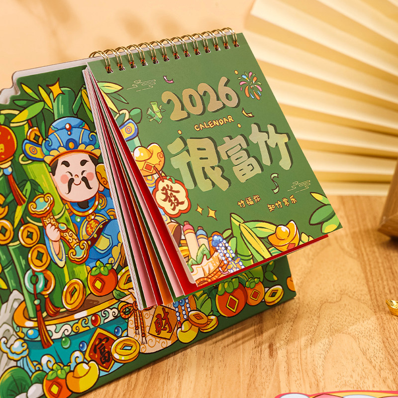 2026年福气满满台历异形日历桌面摆件中国风办公室打卡记事本高考倒计时日程计划表月历可定制企业订做logo