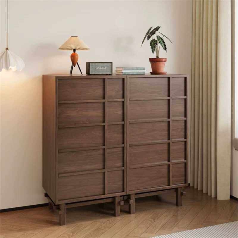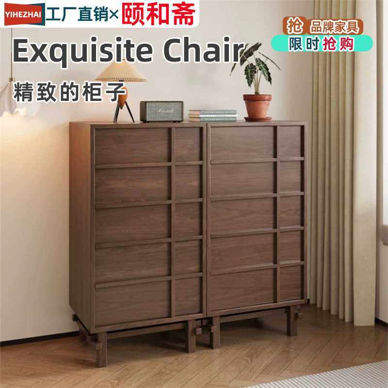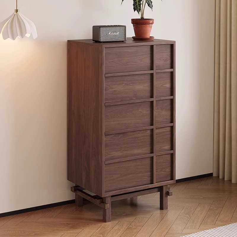 全实木斗柜卧室收纳柜床尾置物柜胡桃木色五斗柜客厅储物柜斗橱柜