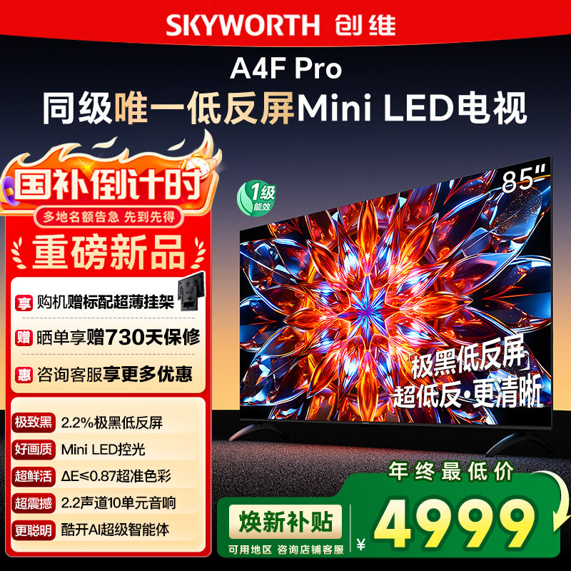 创维85A4F Pro 85英寸Mini LED低反屏4+64G液晶平板4k游戏电视122