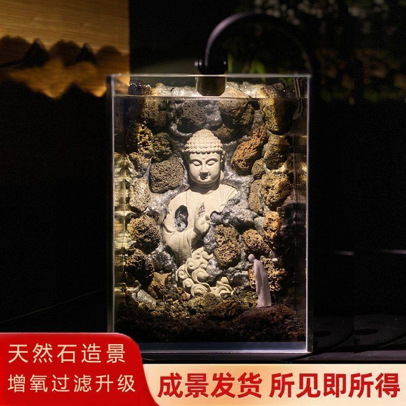 玻璃鱼缸摆件客厅超白斗鱼缸月球创意造景夜灯全套桌面送礼生态缸