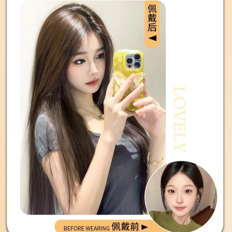 假发片女长发一片式隐形无痕真发蓬松三片式直发量接发贴片长直