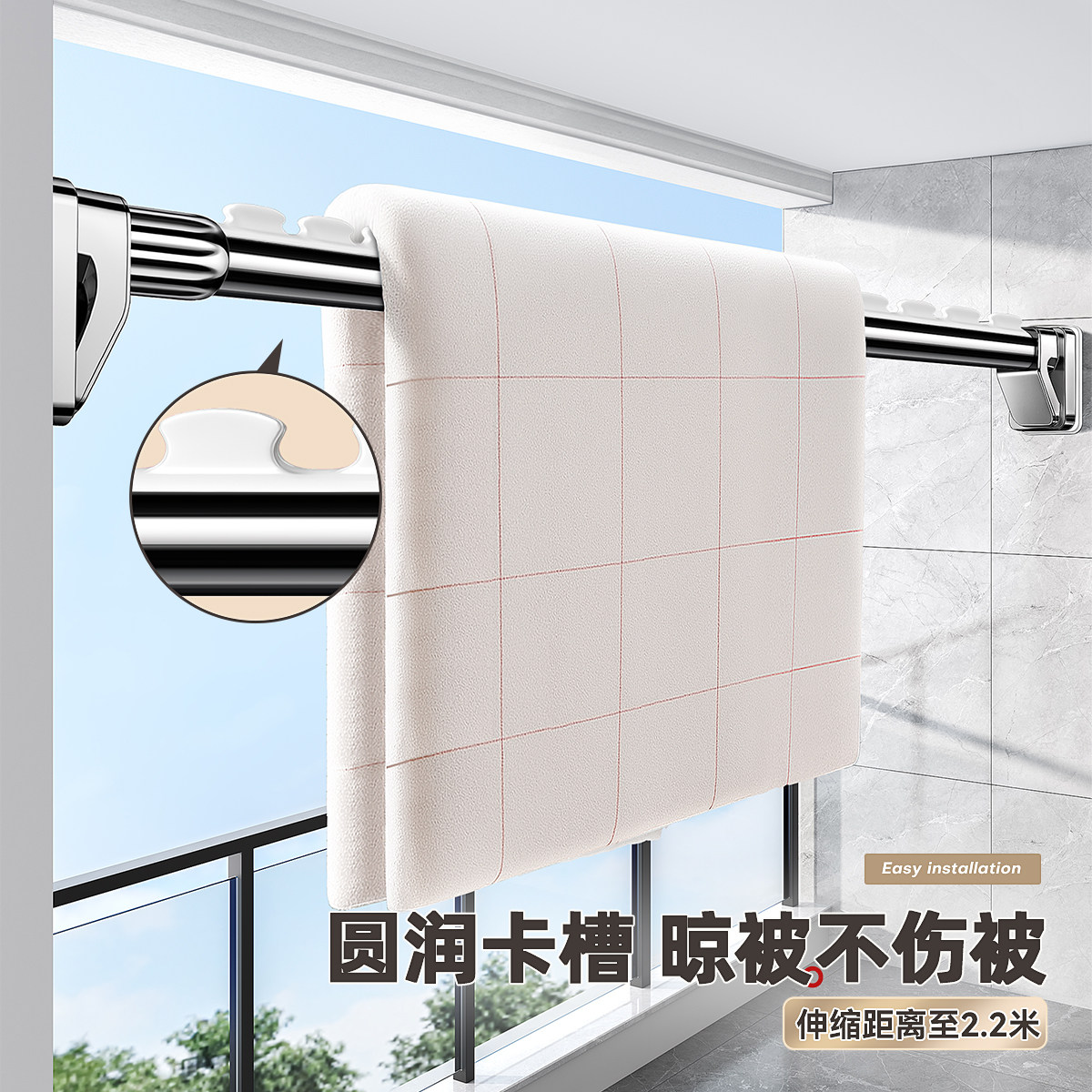 免打孔伸缩晾衣杆阳台固定不锈钢晾衣架防风浴帘杆卫生间墙上撑杆