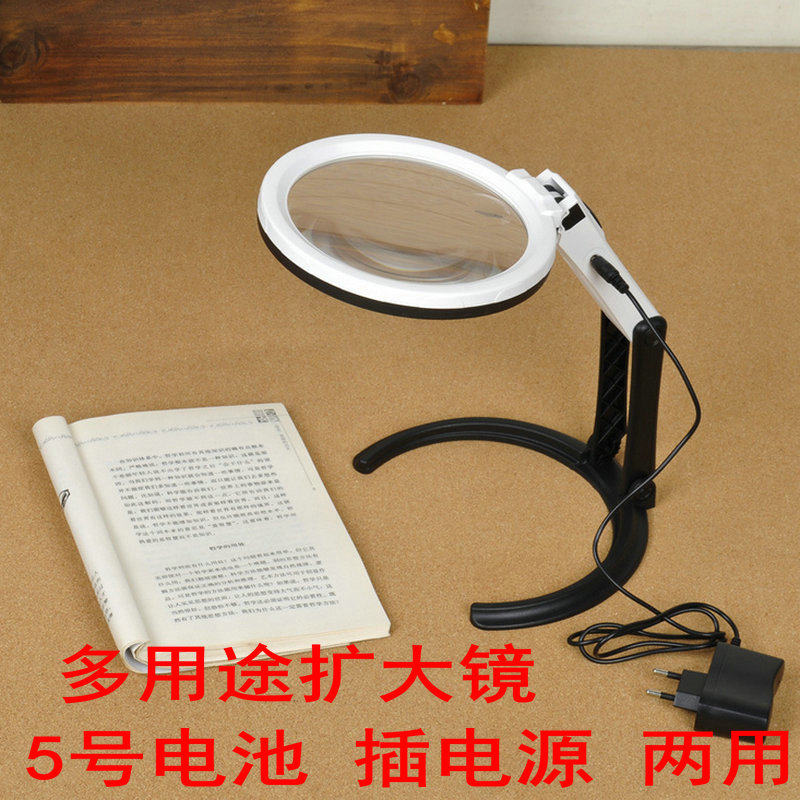 插电源放大镜6倍折叠台式维修带灯老人阅读看手机手持放大镜包邮