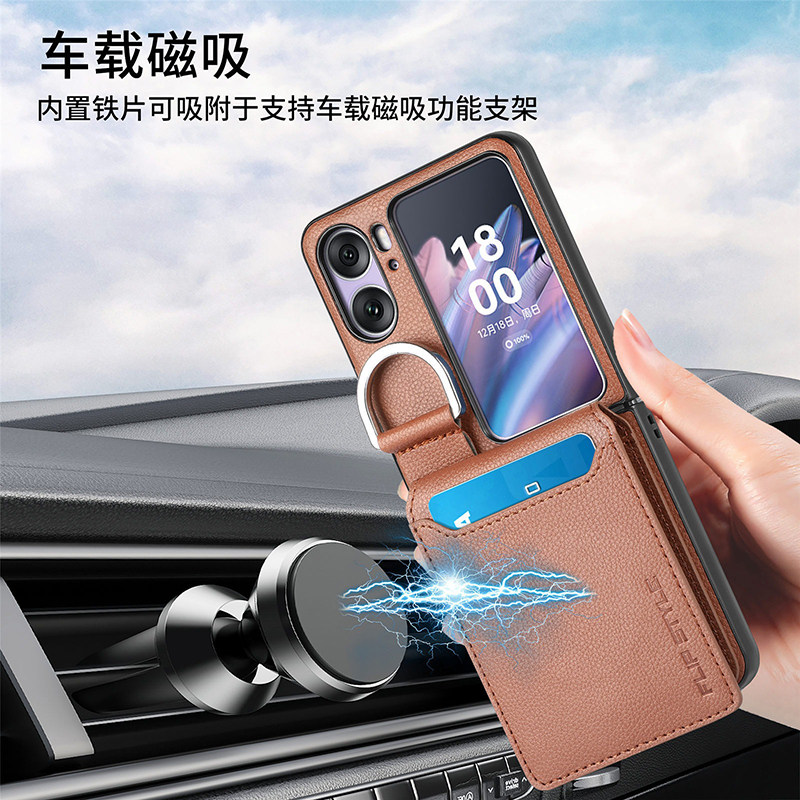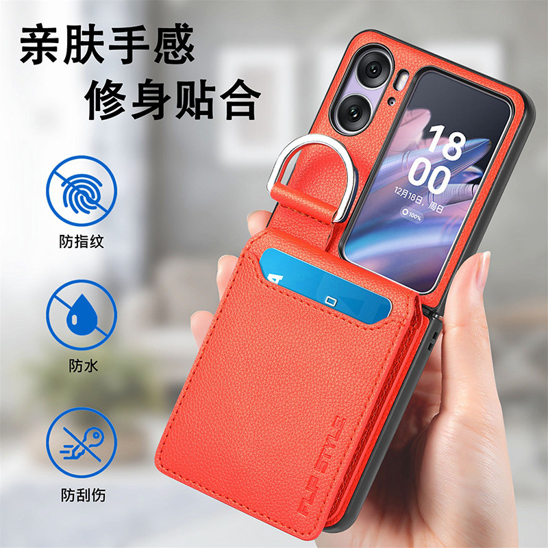 带指环卡包适用oppoFindN3Flip手机壳零钱包支架卡夹N2Flip折叠屏可插卡装卡保护套机壳放证件女神防摔皮壳套