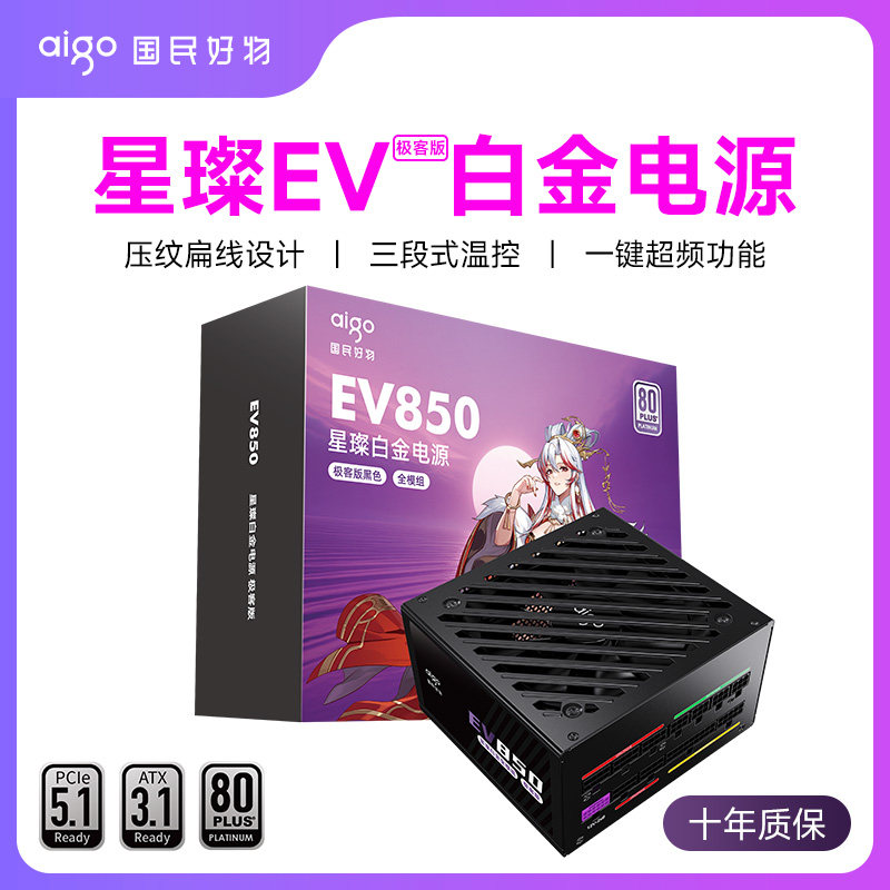 爱国者星璨EV850W极客版白金牌全模组电脑电源1000W1200W机箱电源
