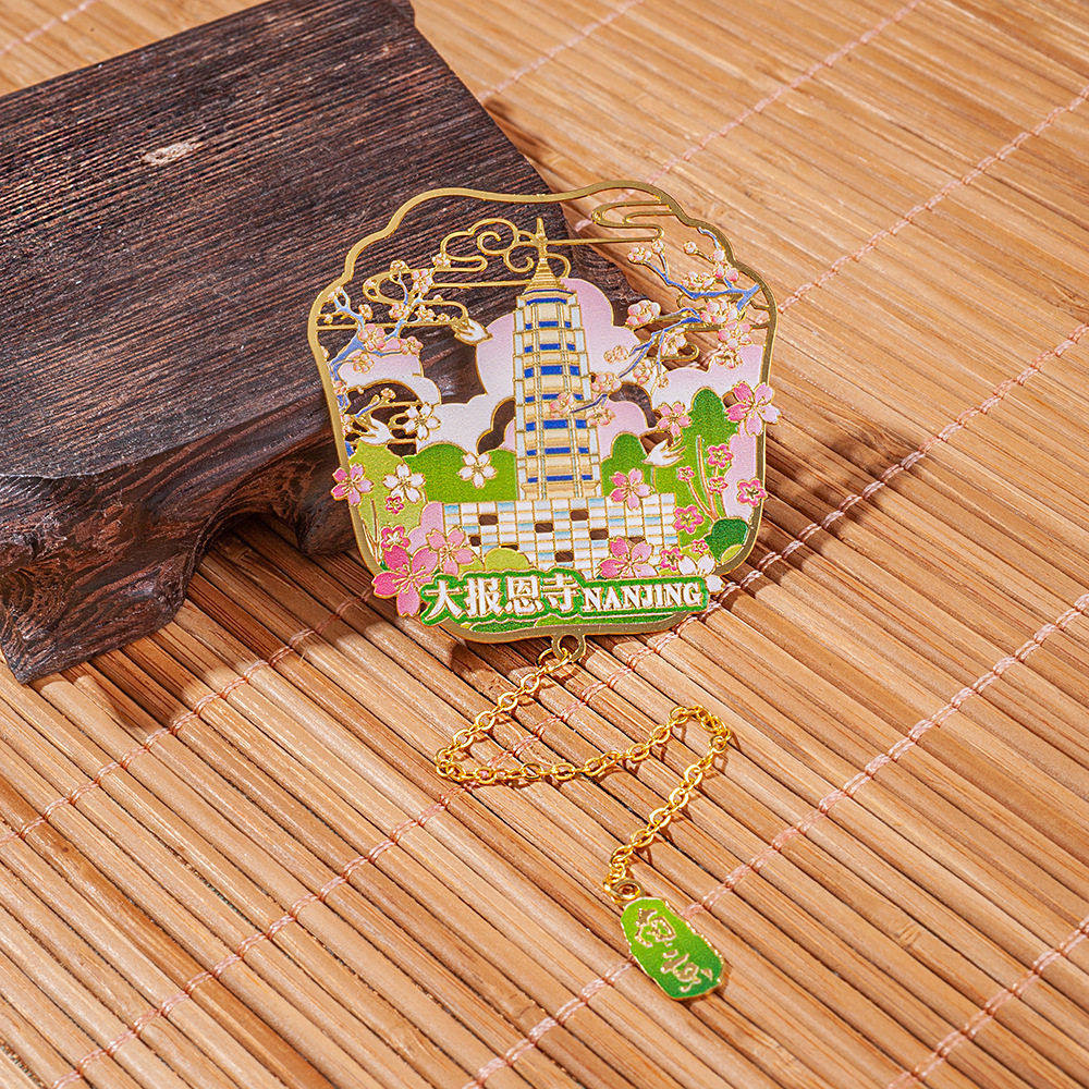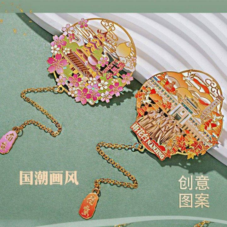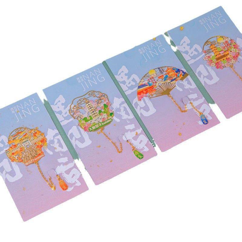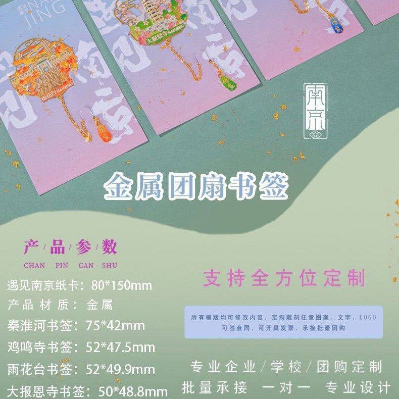 2025新款古典中国风南京旅游团扇书签精致金属礼盒装礼品