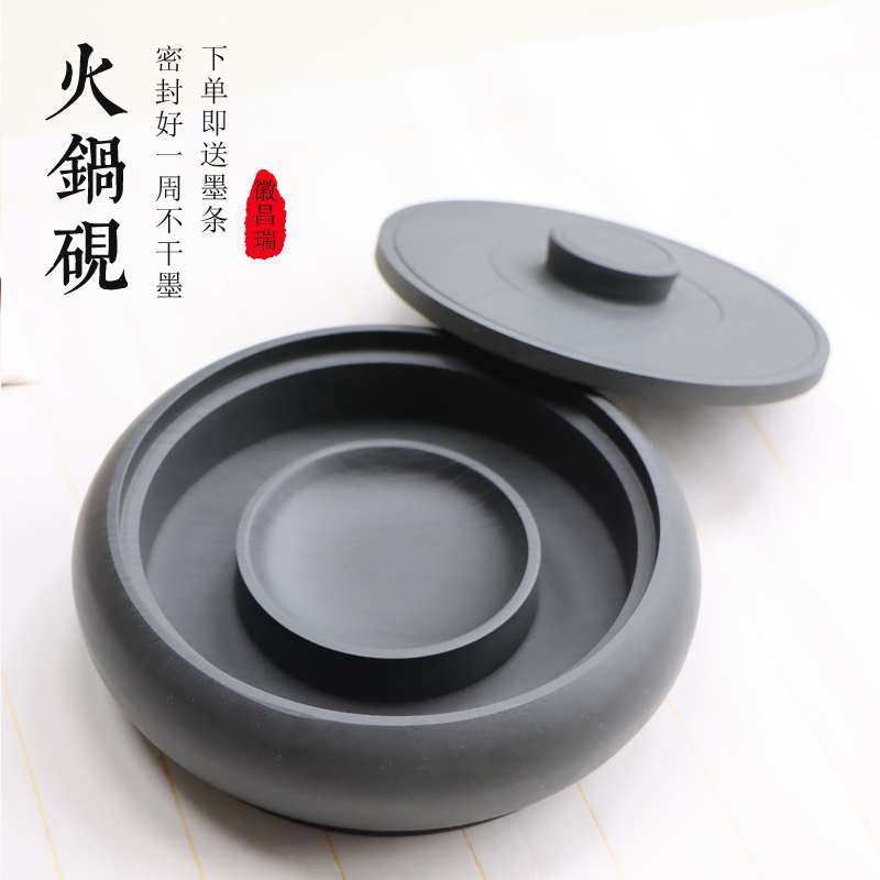 六寸原石火锅砚台初学入门实用歙砚密封好下墨快书法书画石头墨池
