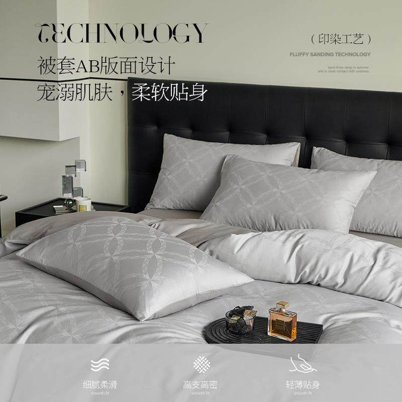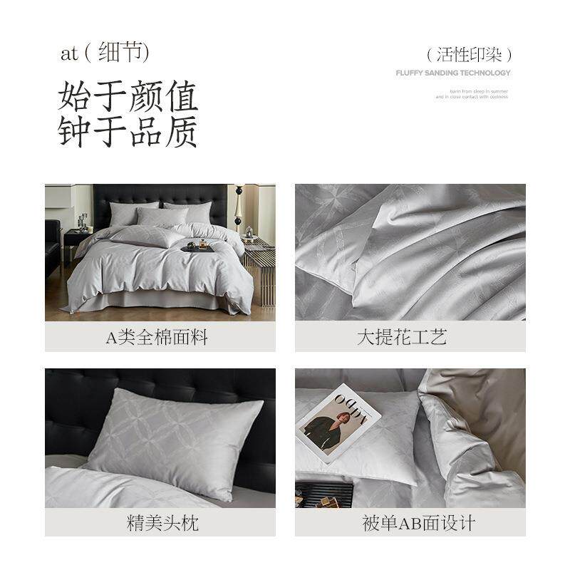 新款轻奢风纯棉A类提花四件套简约夏季凉感全棉被套床单套件