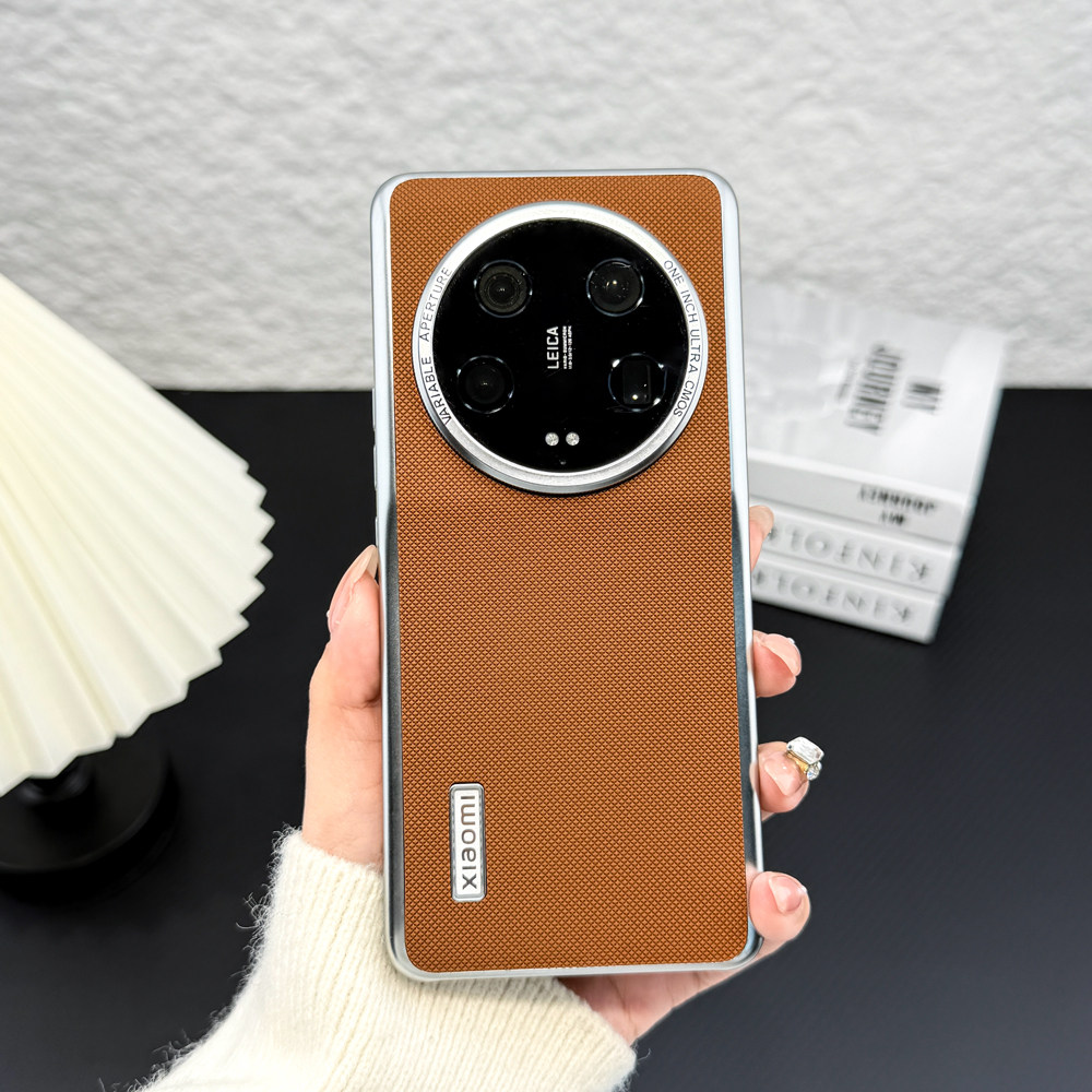 适用/小米13ultra手机壳 三包经典款 PC素材+金属烤漆+优质素皮+镭雕字母