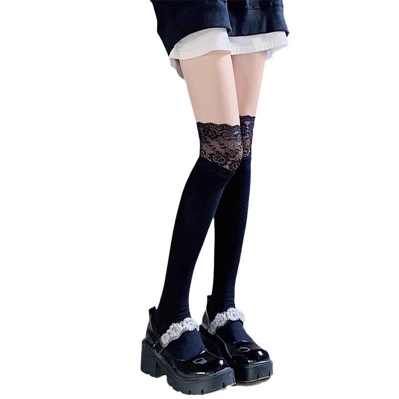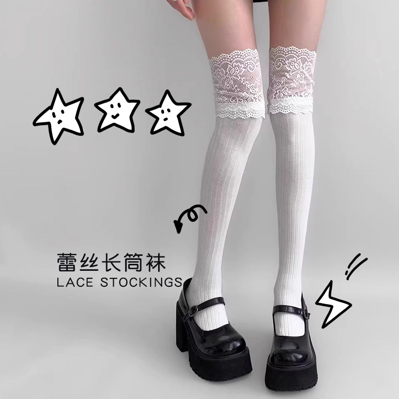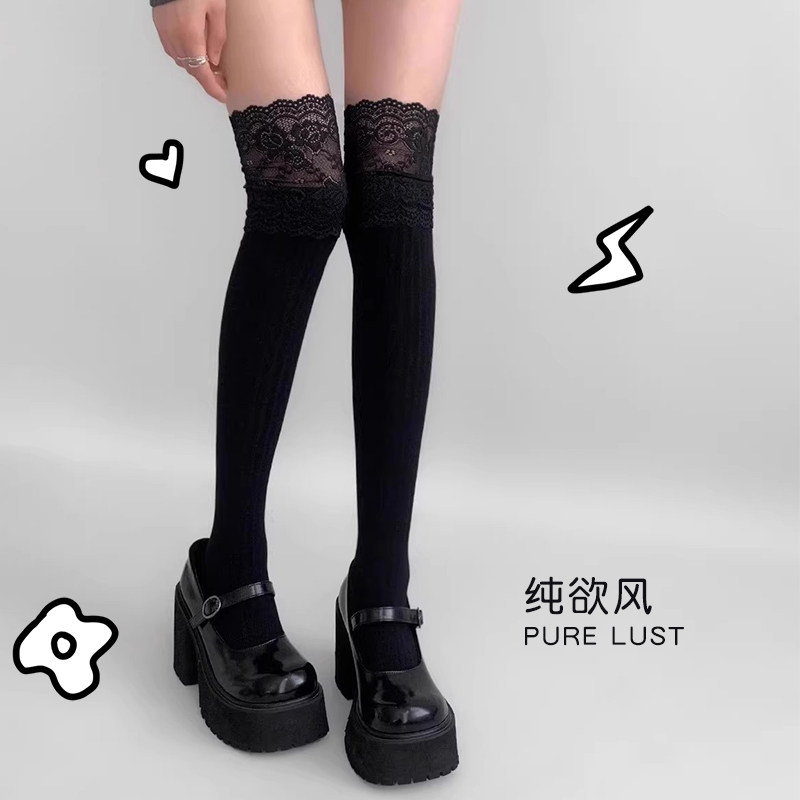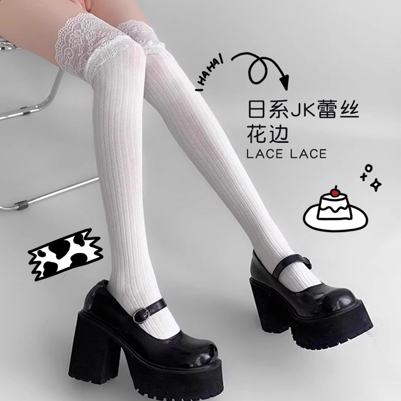 春秋小腿袜子女蕾丝花边纯欲风过膝袜jk皮靴秋天长筒袜中筒袜高筒