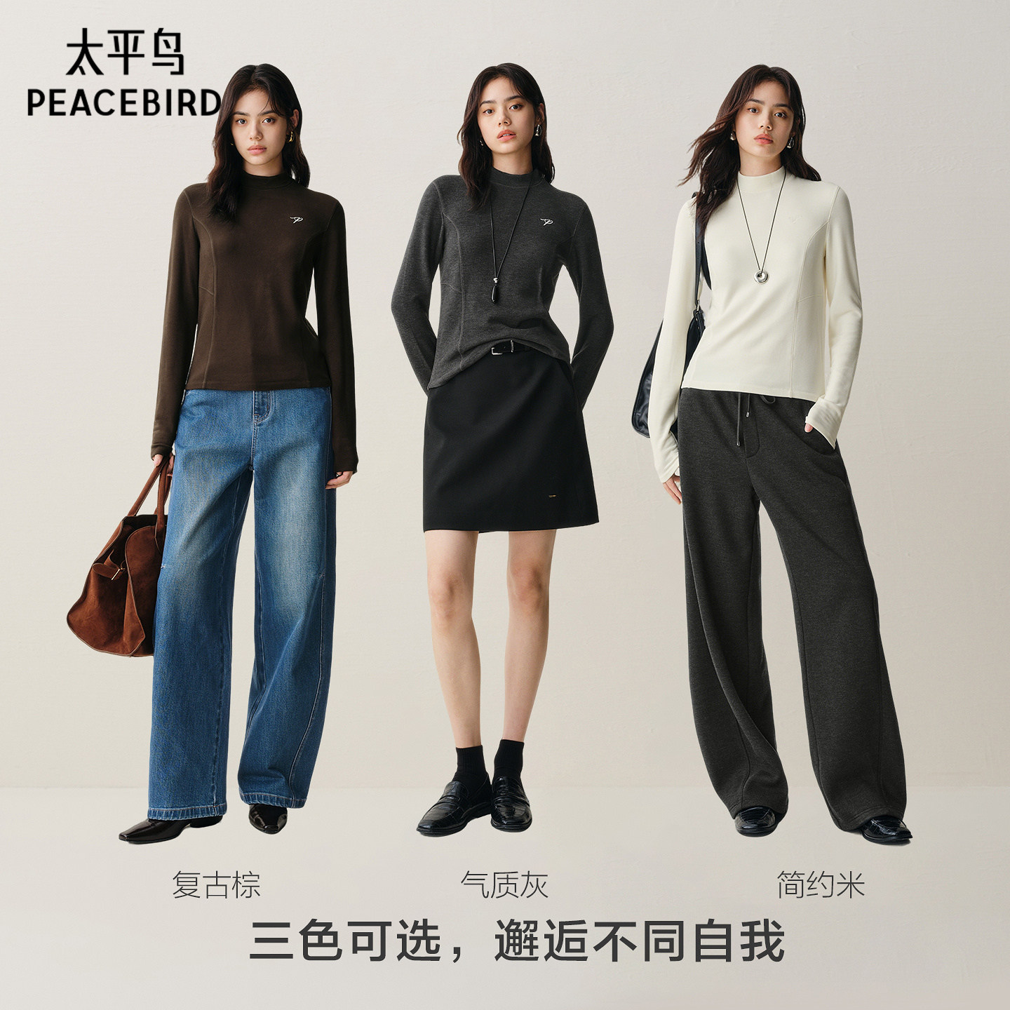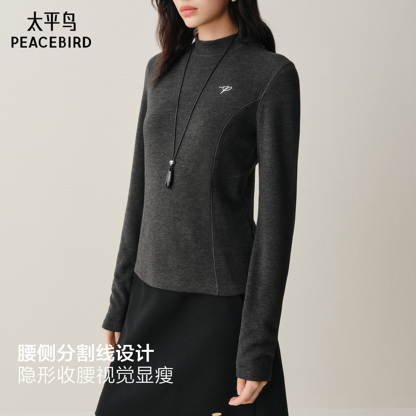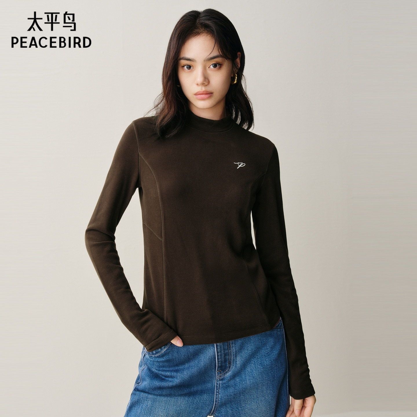 【吸湿发热】太平鸟半高领正肩膨体绒长袖T恤25冬季新款显瘦上衣