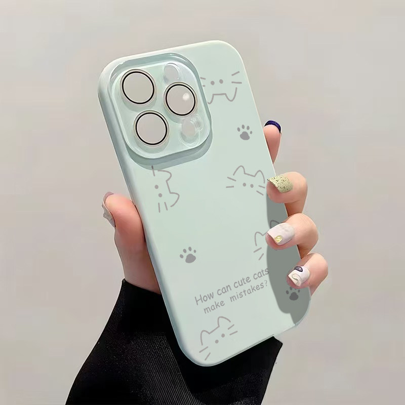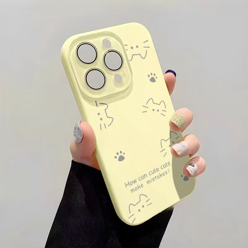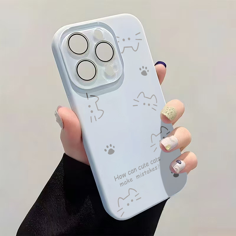 ins小视窗带镜头膜适用苹果16Promax手机壳iPhone15Promax液态硅胶14Pro新款线条猫咪13可爱卡通12防摔保护套