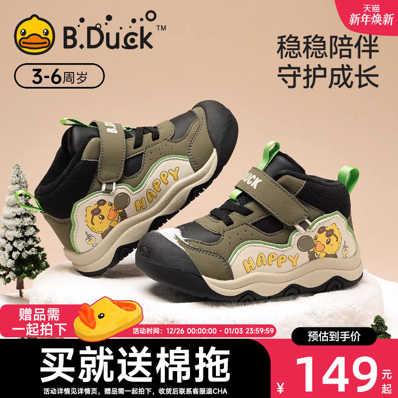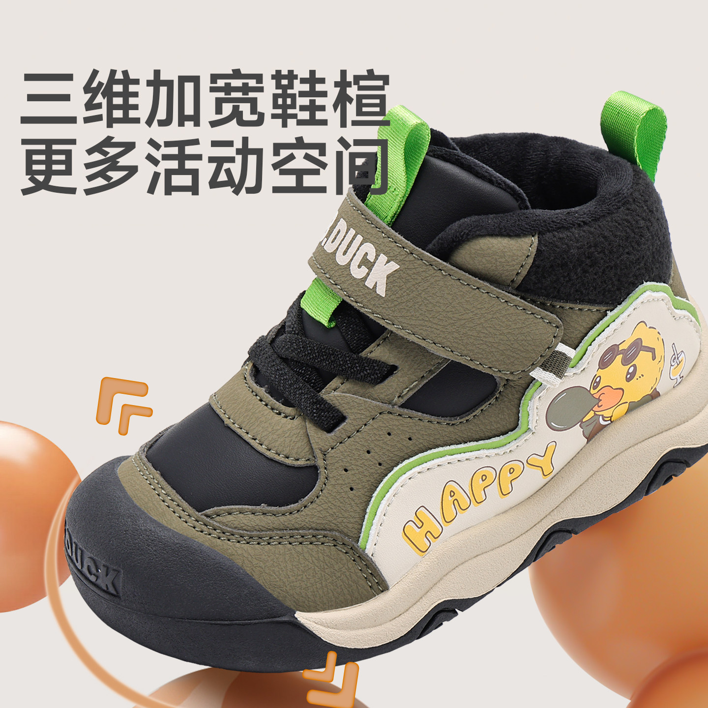 小黄鸭童鞋儿童运动鞋2025冬季新款男童防滑运动鞋保暖休闲棉鞋