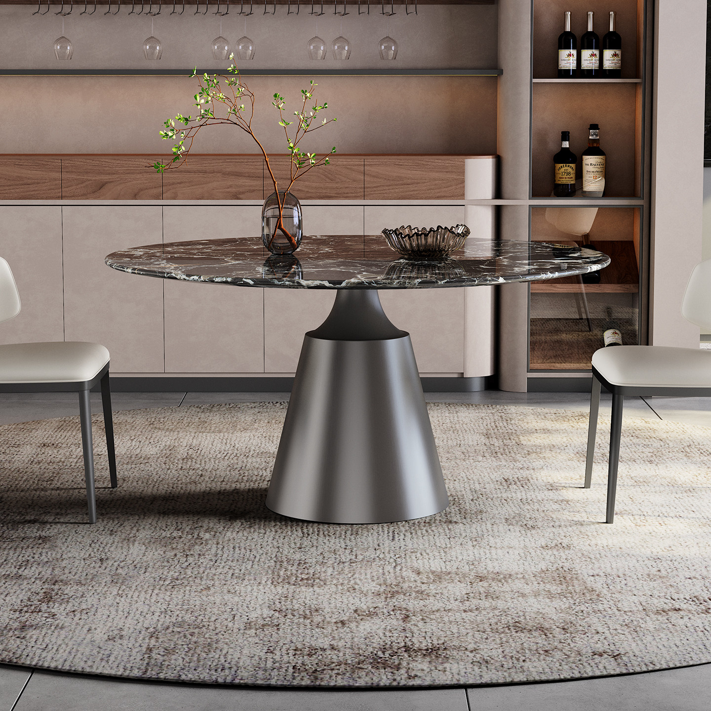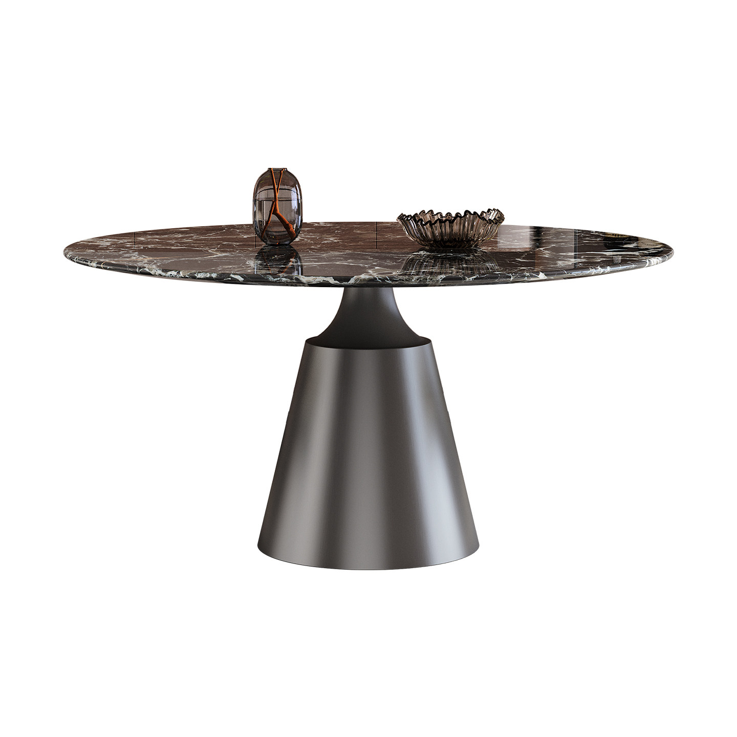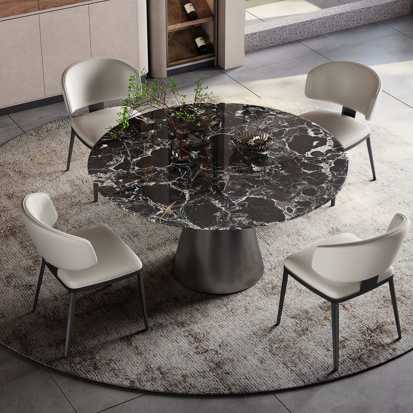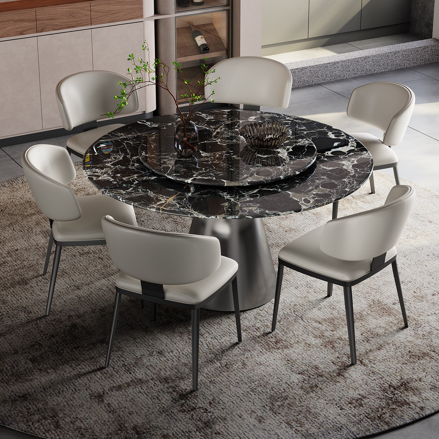 天然大理石圆桌带转盘家用高端小户型意式轻奢高端黑玫瑰奢石餐桌