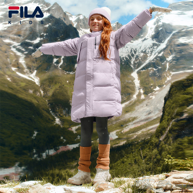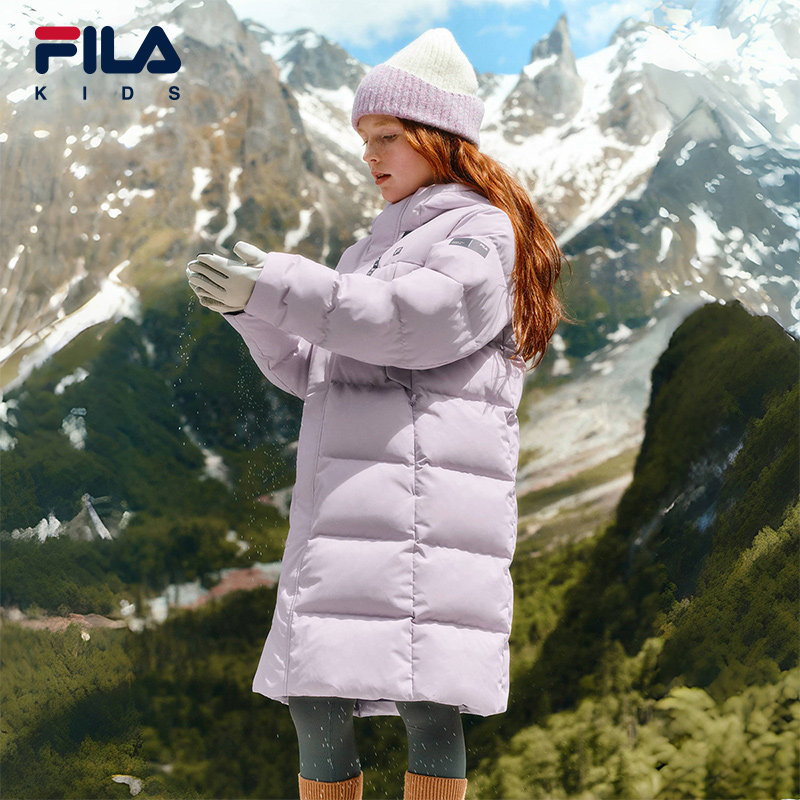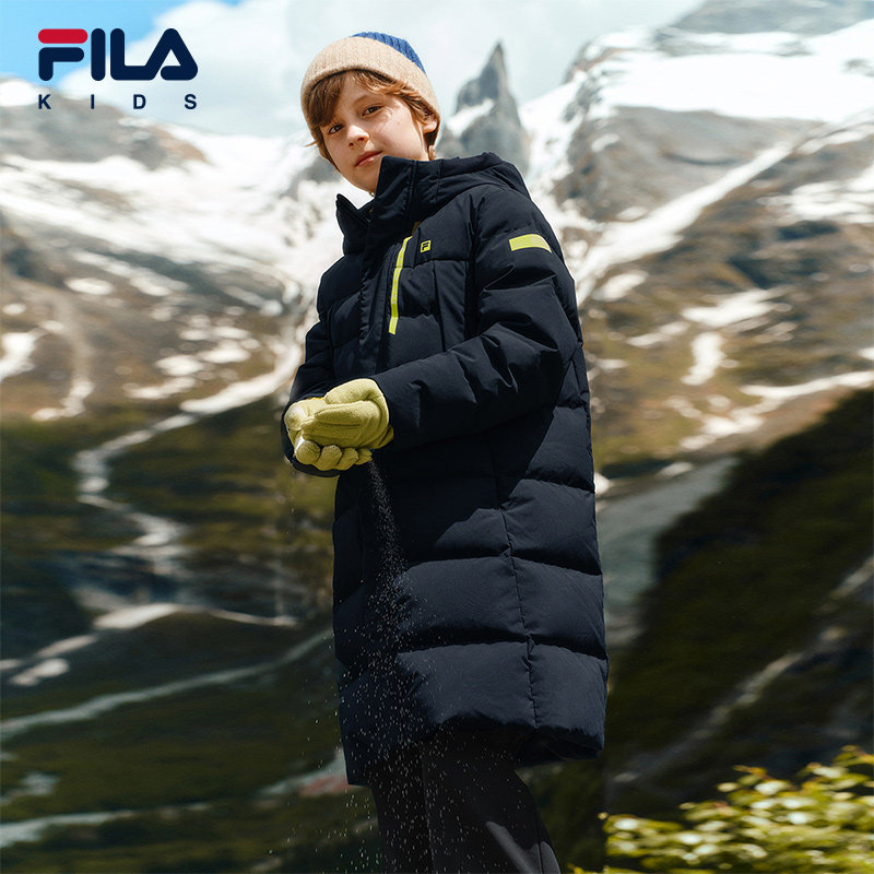 FILA KIDS斐乐童装儿童长款羽绒服冬季款男女童保暖连帽鹅绒外套