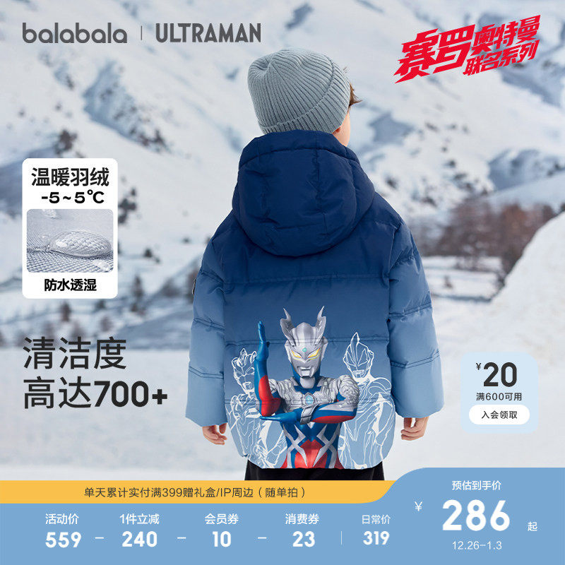 【奥特曼IP】巴拉巴拉儿童羽绒服冬装男童连帽外套潮舒适保暖上衣
