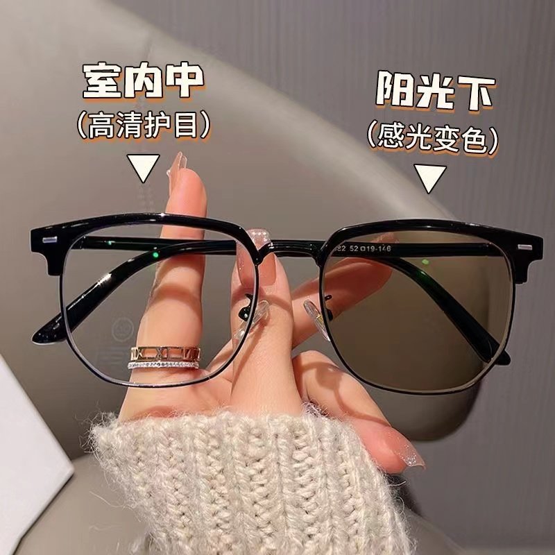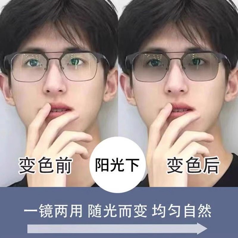 痞帅变色近视眼镜理工男款斯文败类半框防蓝光平光镜复古眼镜框架