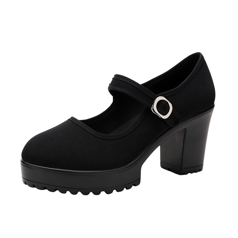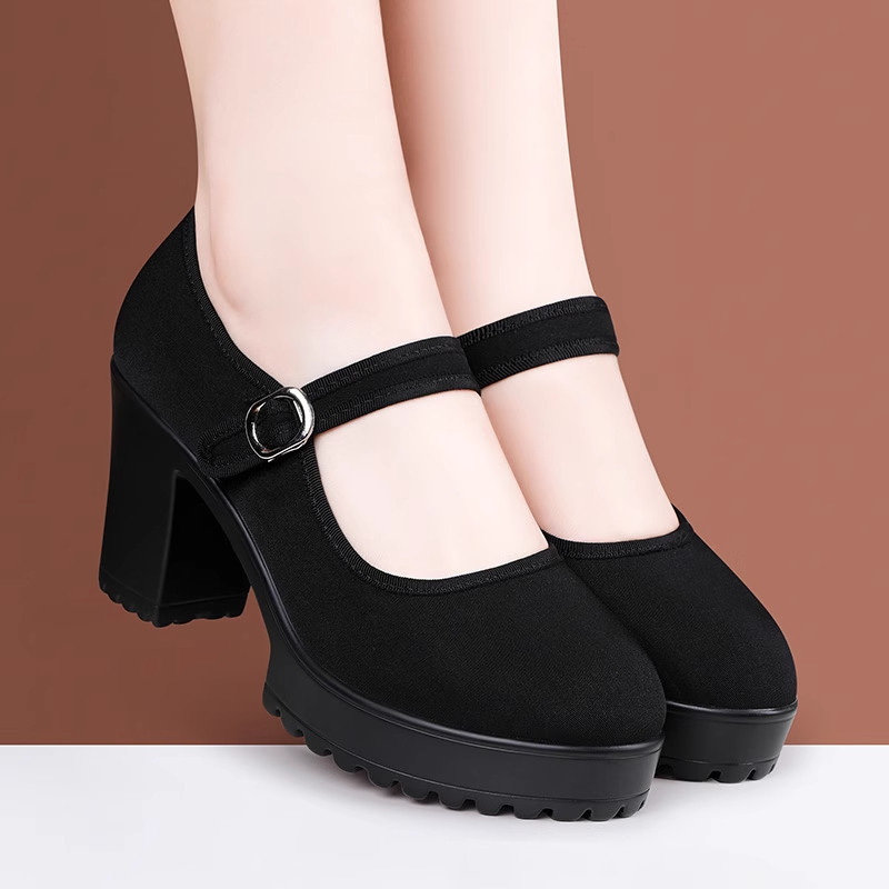 中跟厚底老北京布鞋女黑色上班鞋粗跟防滑工作鞋广场舞鞋妈妈鞋女