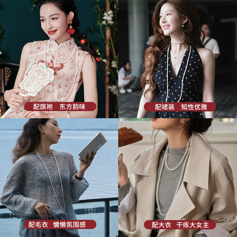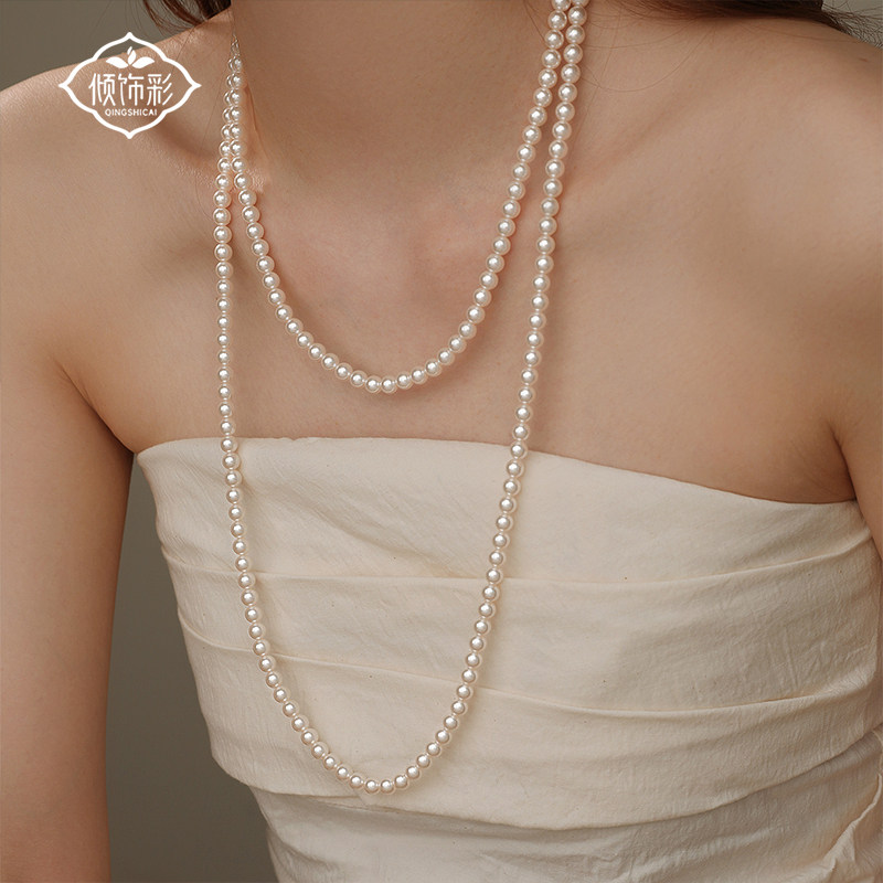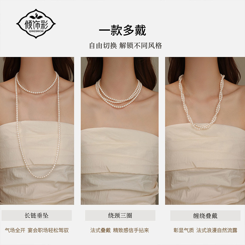 珍珠项链长款毛衣链叠戴女款2025新款轻奢小众颈链配旗袍多层精致