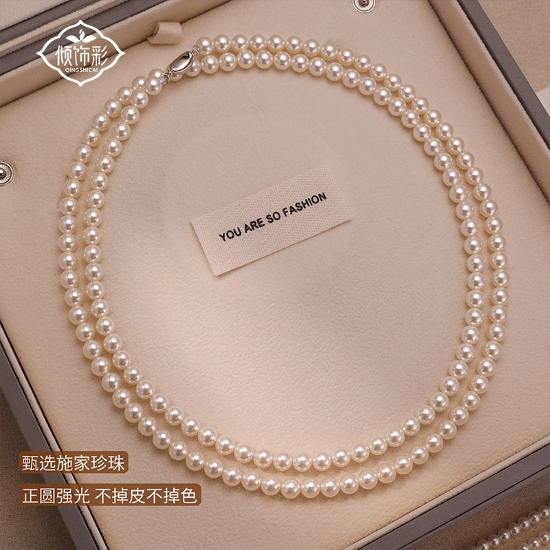 施家真多麻灰色珍珠项链颈链轻奢小众毛衣链配饰女款2025新款爆款