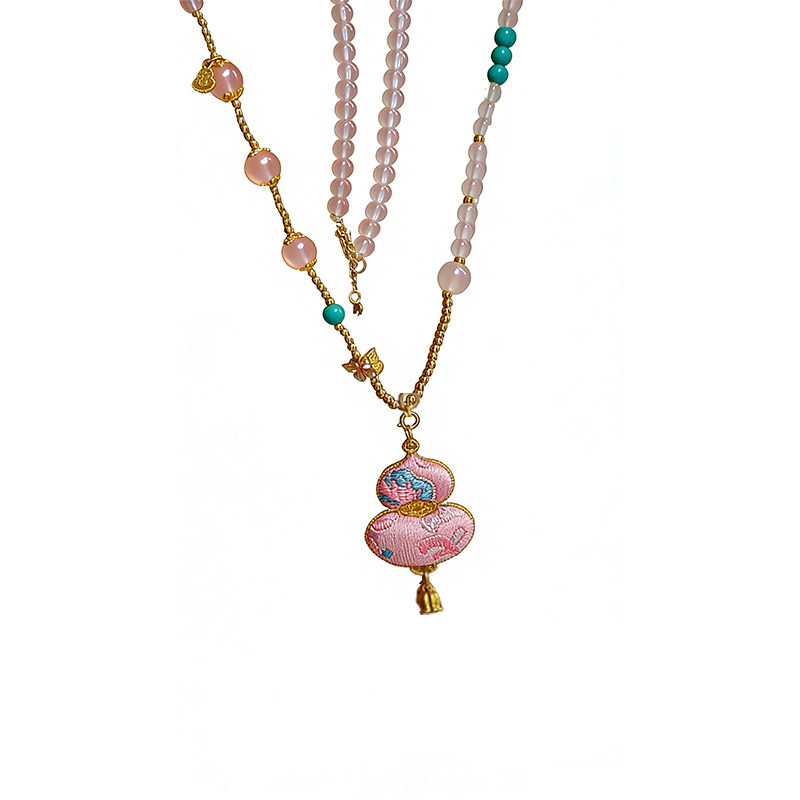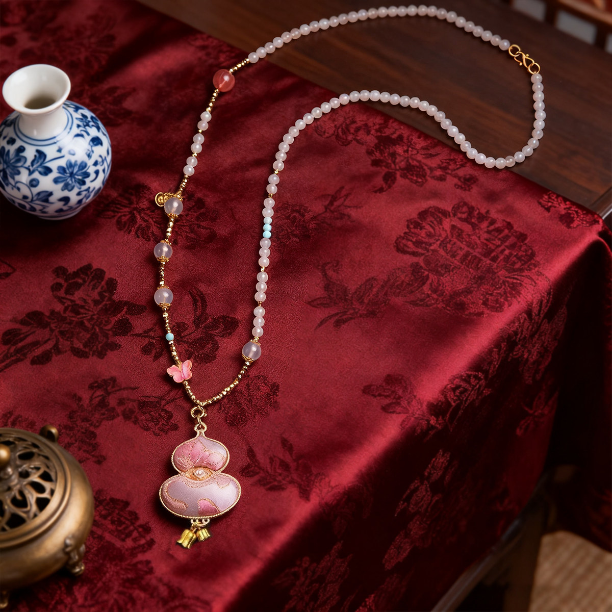 冬季新款宋锦粉葫芦项链中式旗袍配饰如意吊坠长款女饰品毛衣
