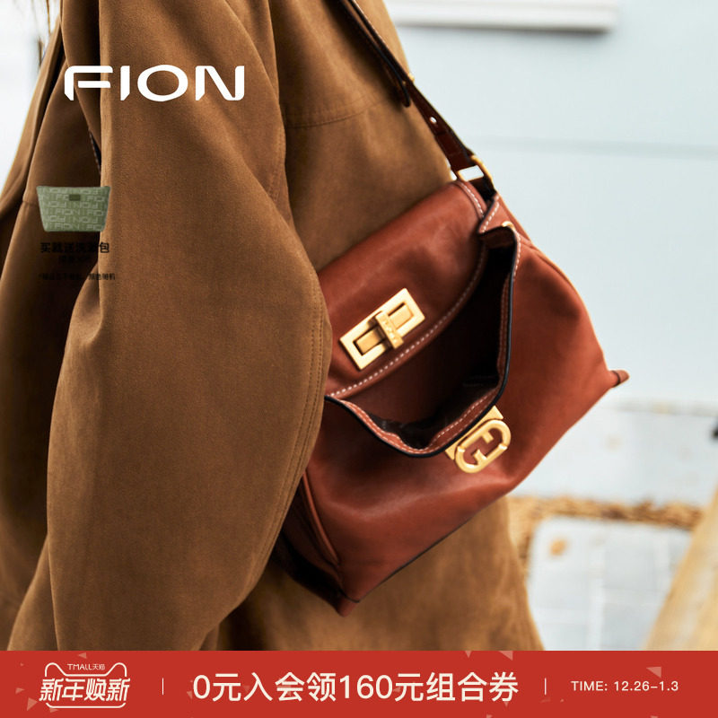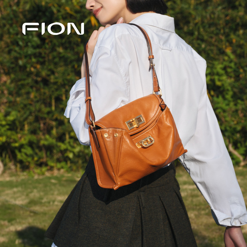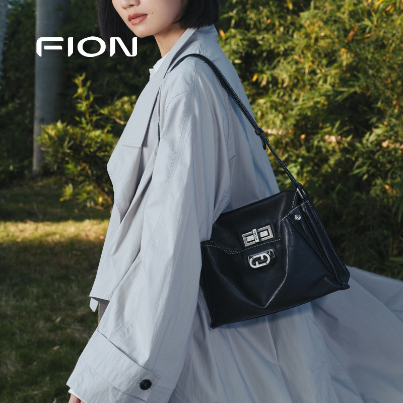 Fion/菲安妮植鞣皮托特包新款通勤大容量真皮单肩斜挎慵懒包包女