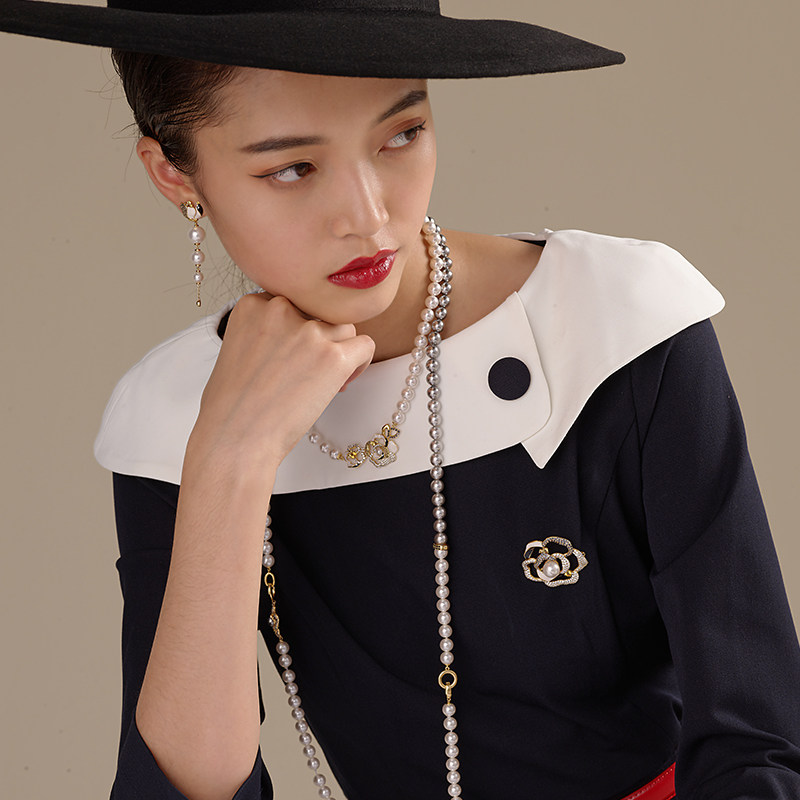 Fellala/翡拉拉「山茶花」系列优雅轻奢小众叠戴项链女长颈链
