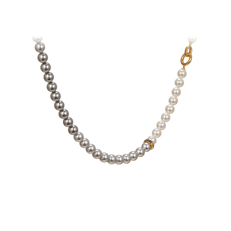 施家真多麻灰色珍珠项链颈链轻奢小众毛衣链配饰女款2025新款爆款