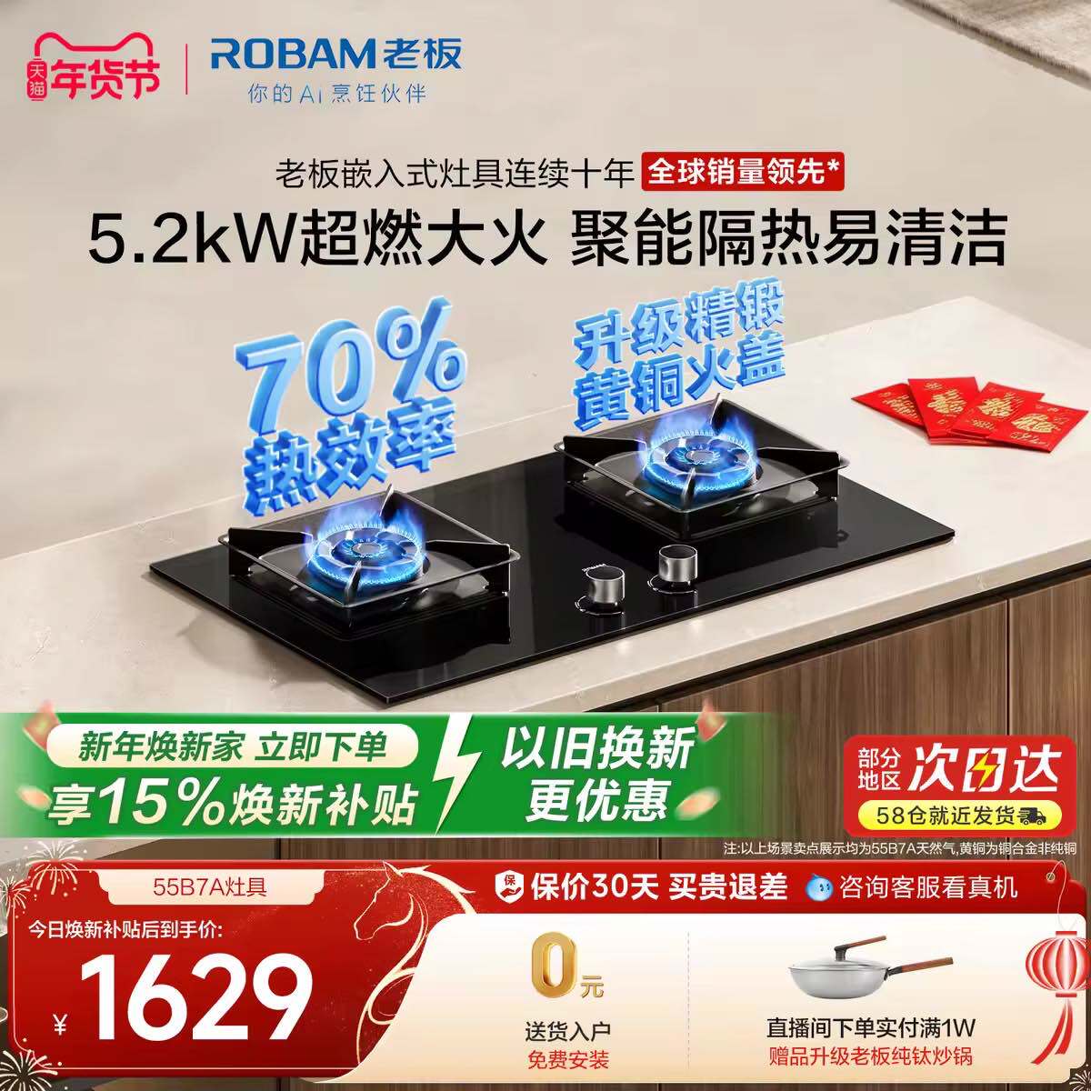 [新款]老板55B7A燃气灶煤气天然液化气双灶具猛火家用官方旗舰店