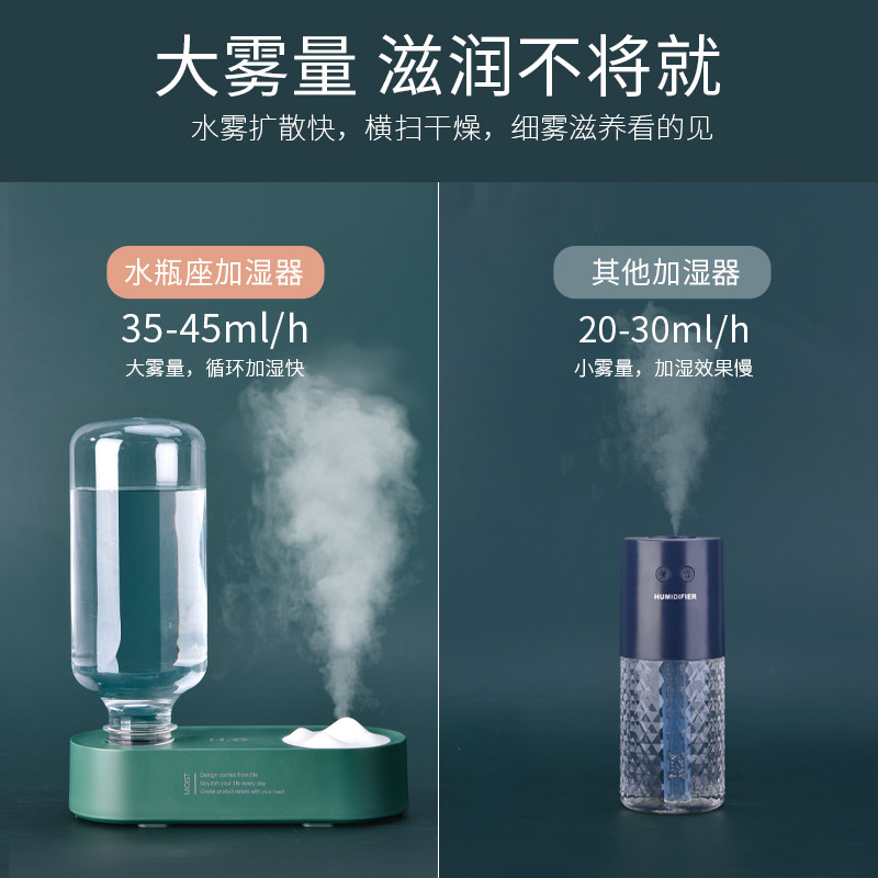 矿泉水瓶加湿器便携式小型无线简易USB充电款空气大喷雾旅行卧室家用办公室工位桌面迷你宿舍学生静音不插电