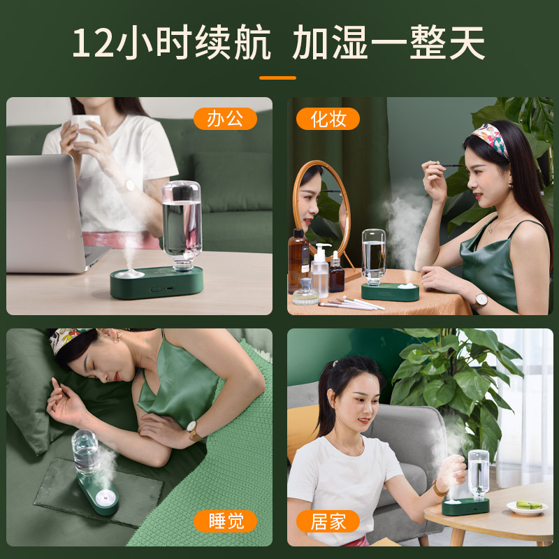 zaiwan矿泉水瓶加湿器usb充电小型迷你卧室家用静音补水大喷雾学生宿舍办公室桌面空气雾化旅行便携车载汽车