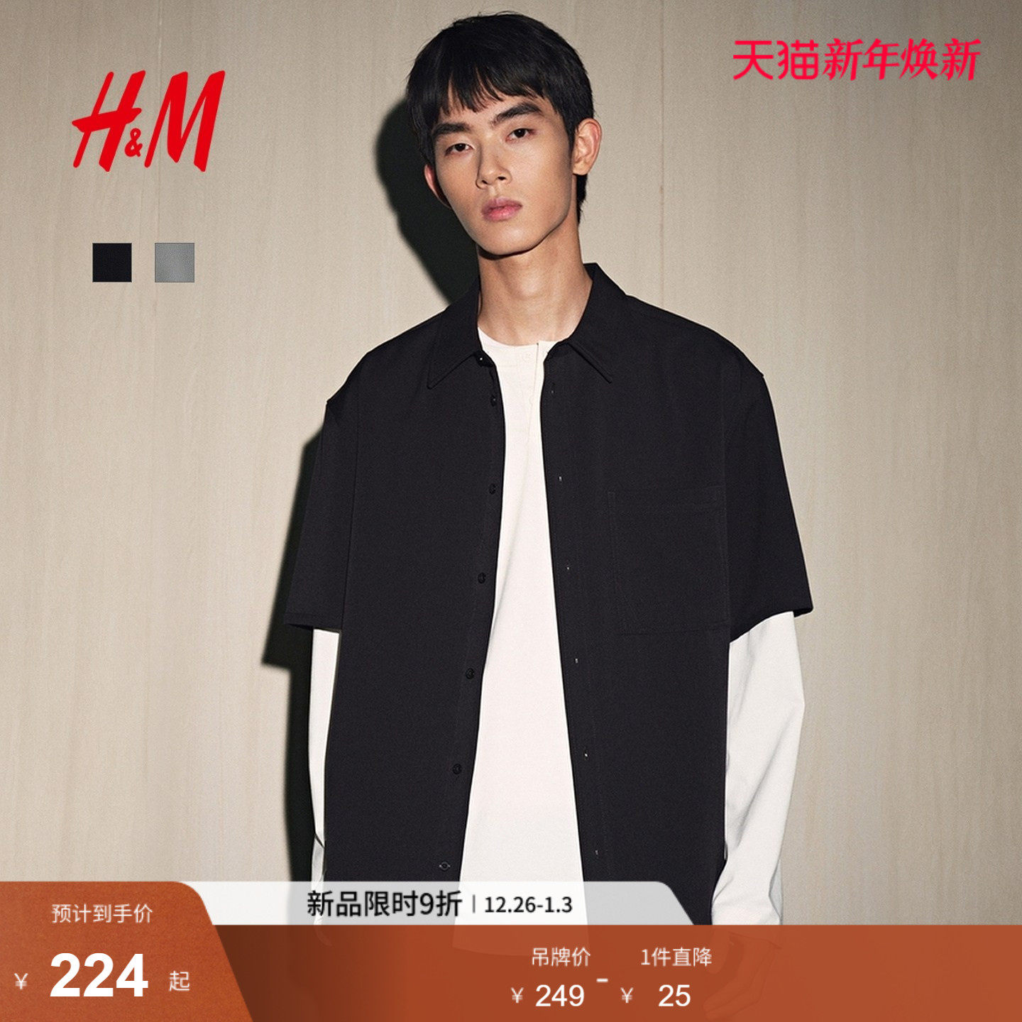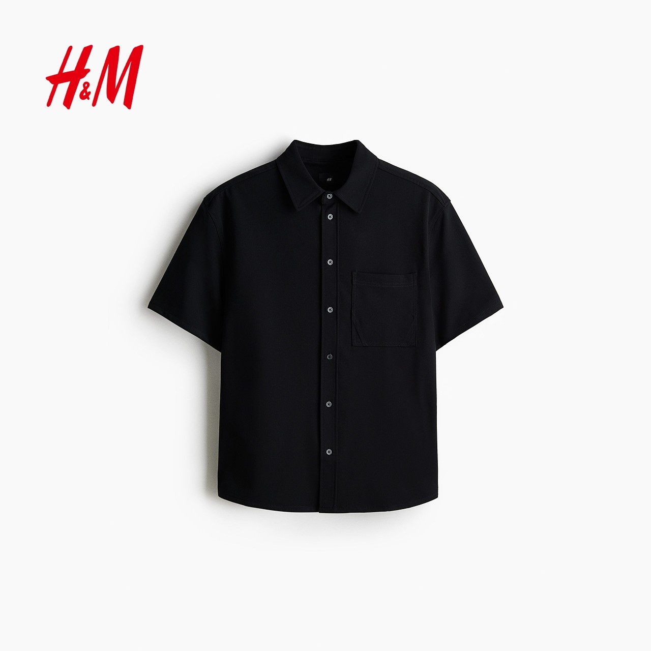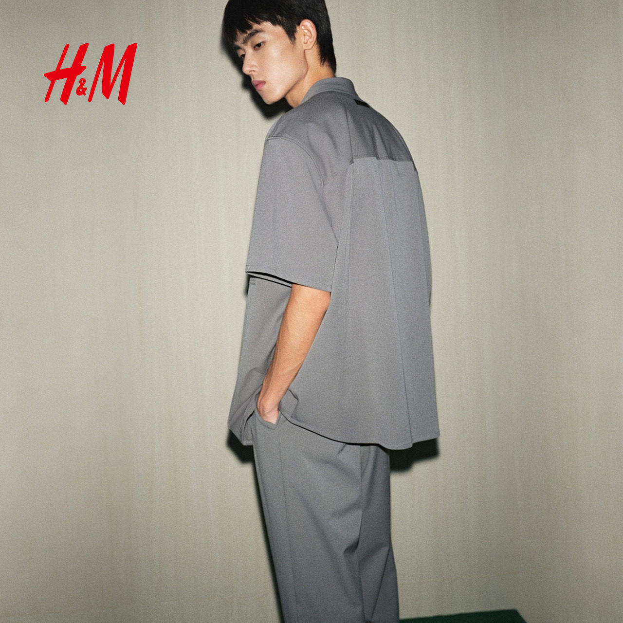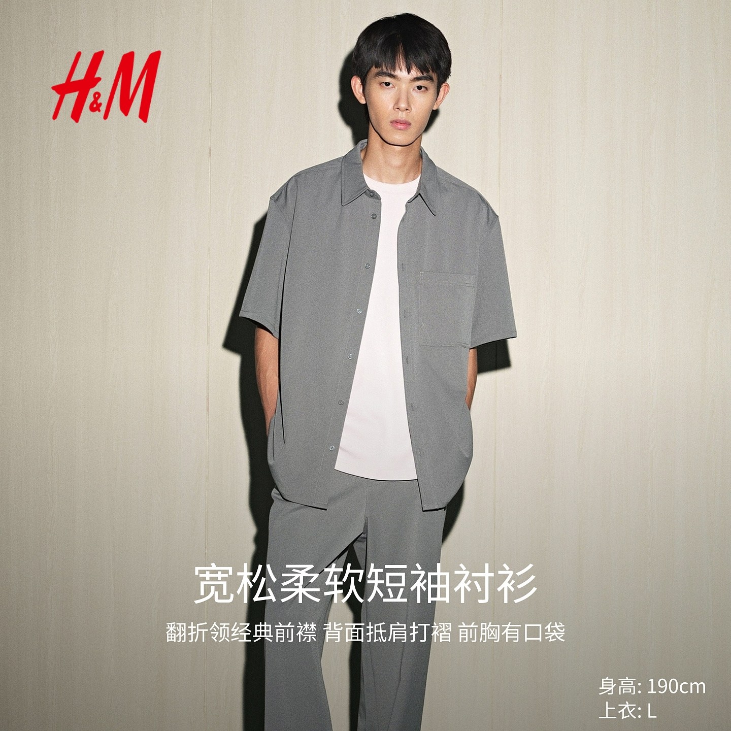 HM男士衬衫春季时尚简约通勤宽松版短袖衬衫1300730