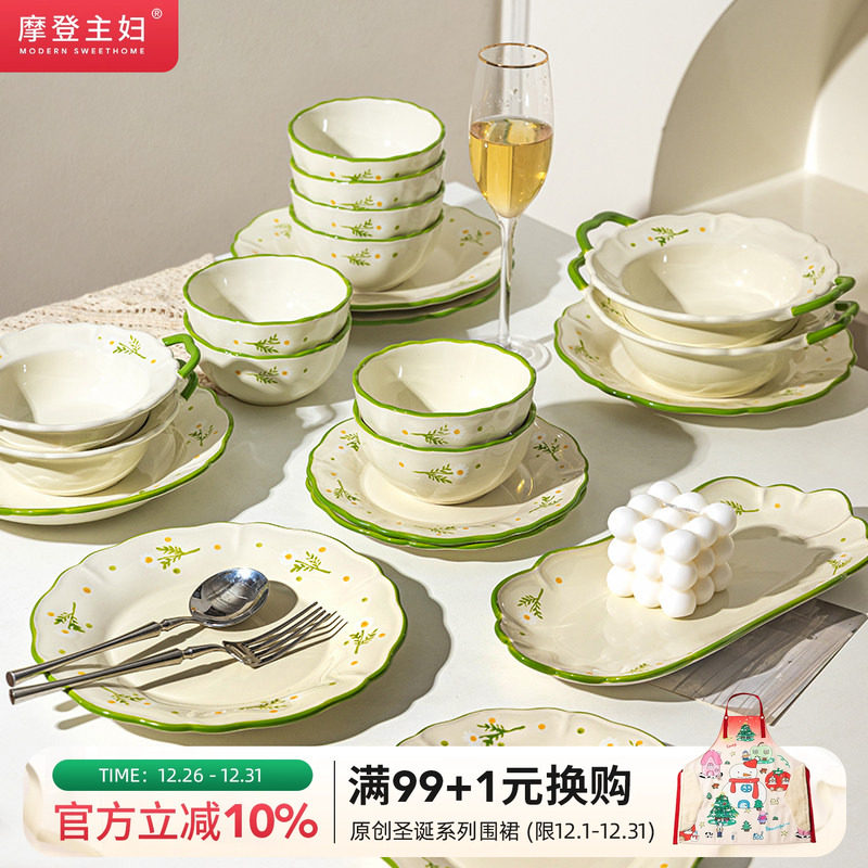 摩登主妇雏菊釉下彩碗碟餐具家用2025新款碗具菜盘子面碗饭碗汤碗