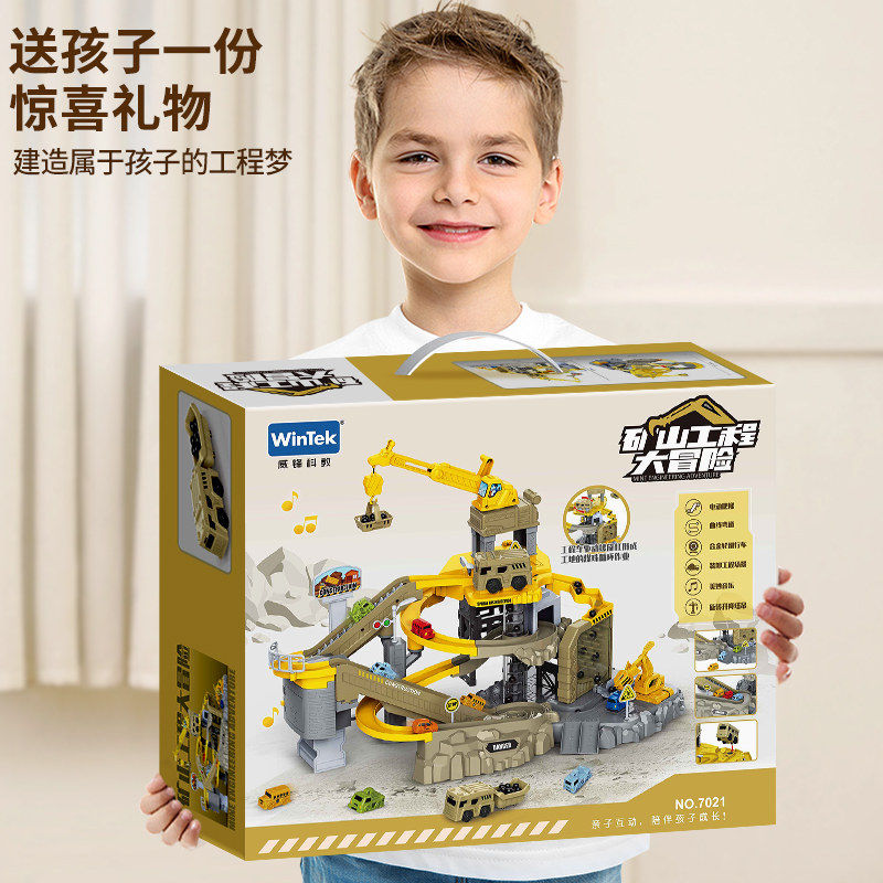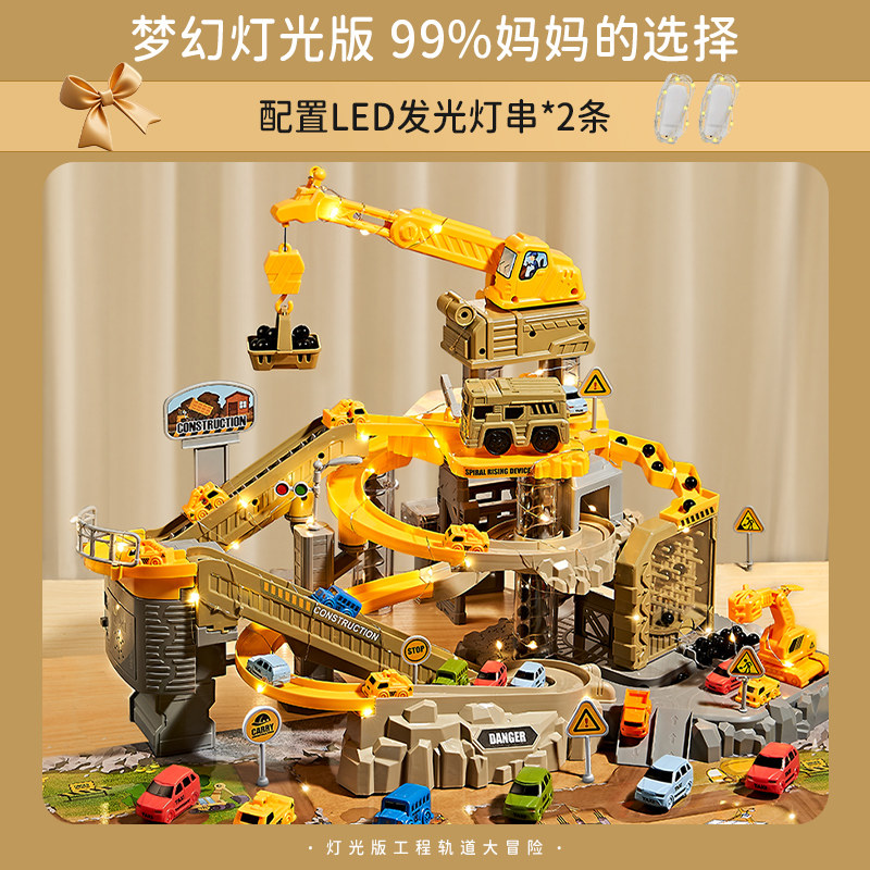 工程轨道车儿童玩具滑行小火车停车场汽车闯关大冒险3岁4男孩益智