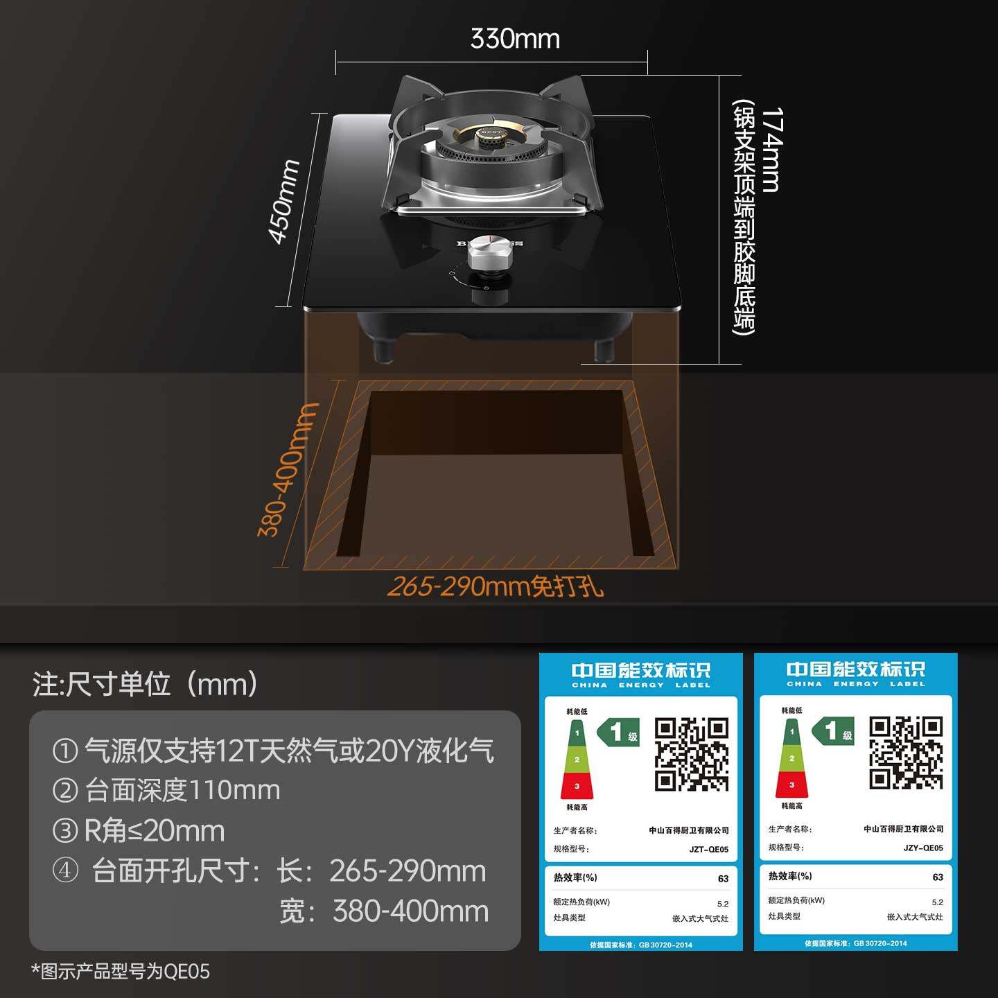 华帝百得燃气灶单灶煤气灶猛火灶液化气QE05天然气灶以旧换新补贴