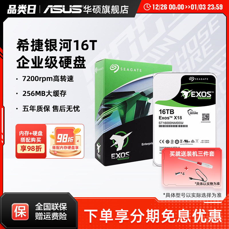 Seagate希捷银河16t sata机械硬盘氦气盘企业级服务器华硕旗舰店