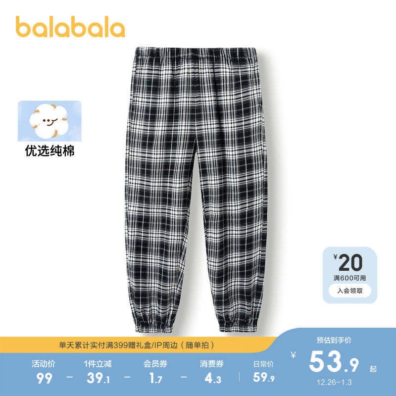 巴拉巴拉儿童睡裤男童家居裤女童打底柔软裤子童装长裤洋气春秋装