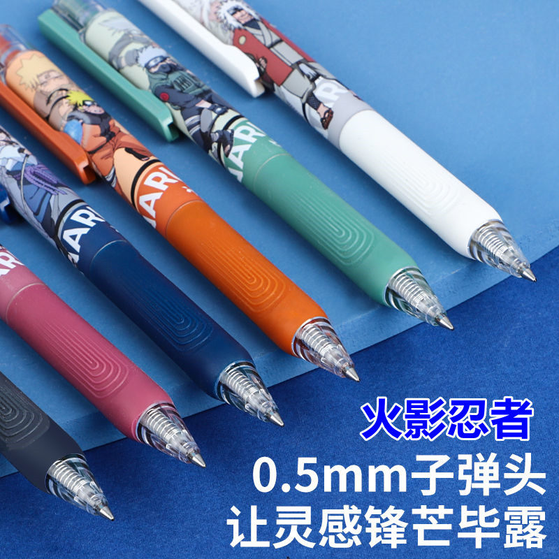 得力速干0.5按动中性笔火影忍者盲盒限定款学霸刷题黑色签字笔中小学生考试水笔卡通人物动漫子弹头按动笔芯