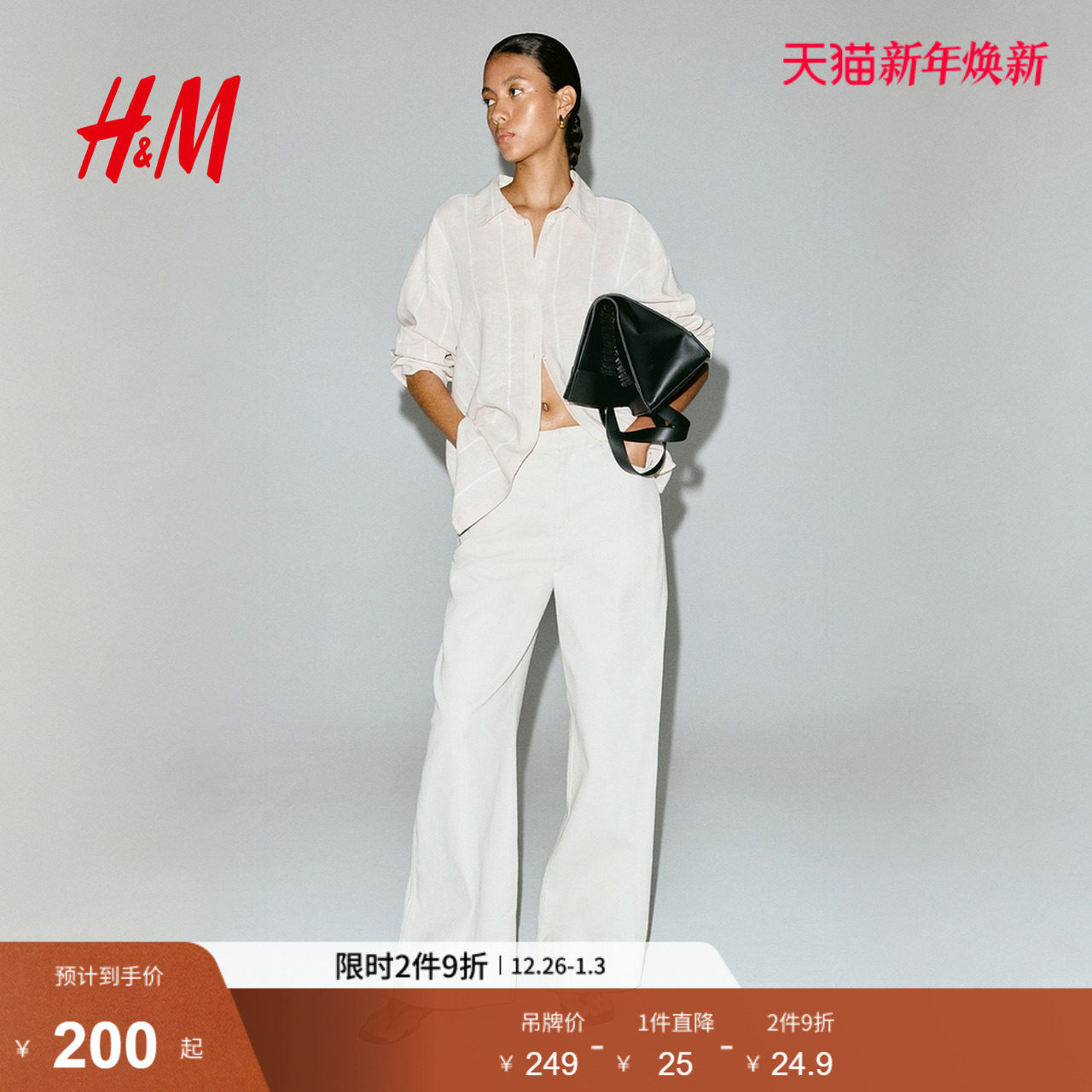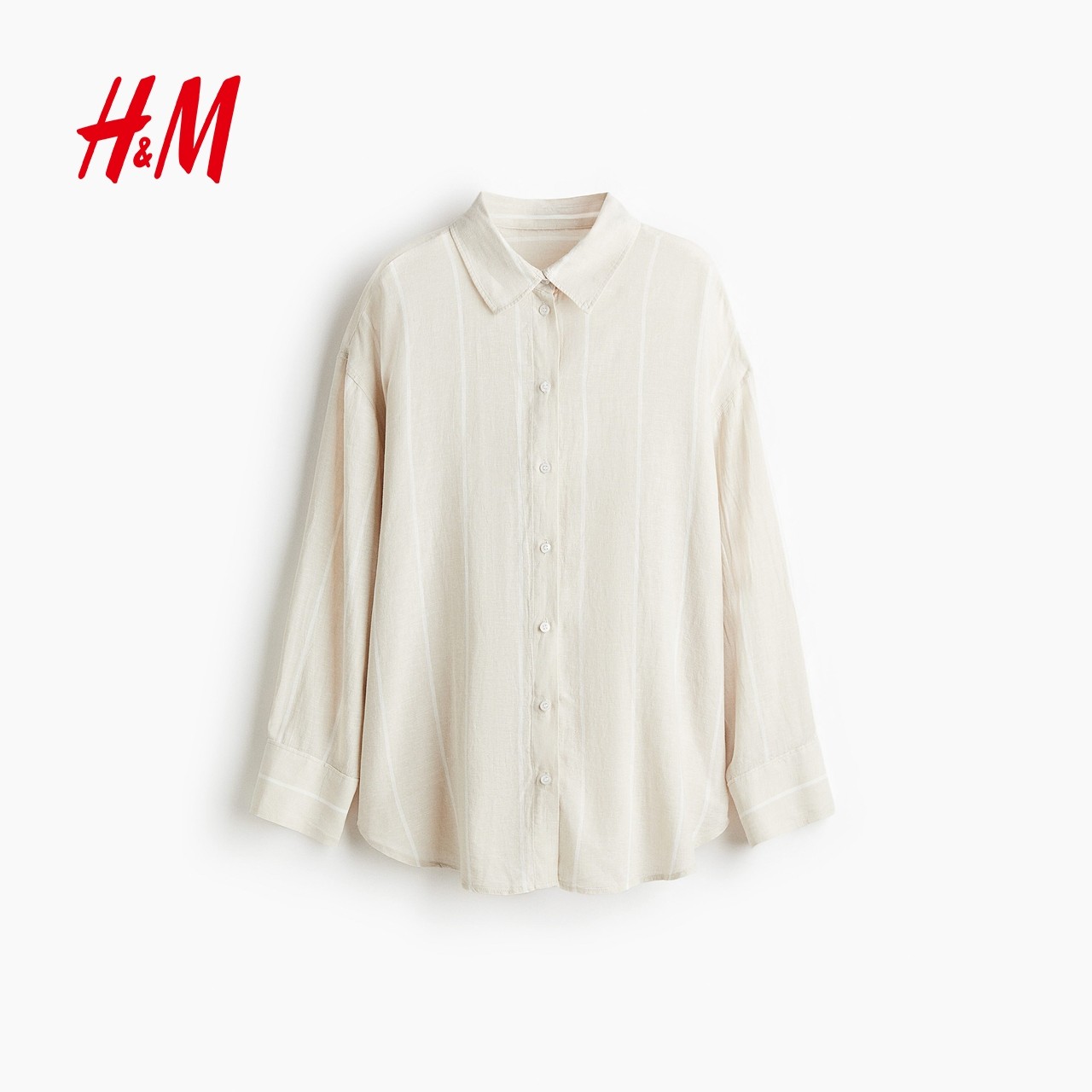 HM女装衬衫2025年冬季新款通勤亚麻混纺宽松衬衣薄外套1283782
