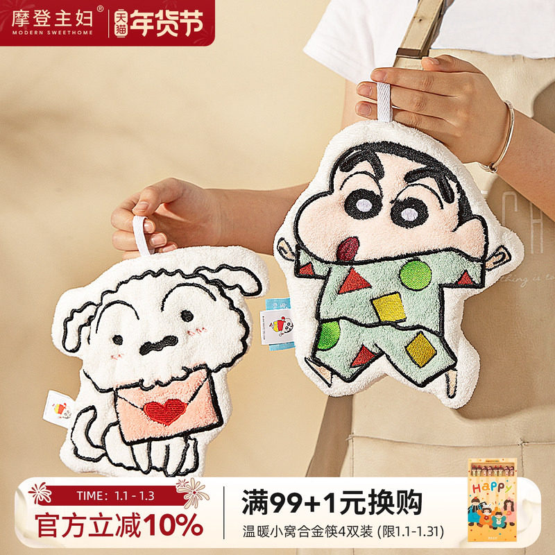摩登主妇蜡笔小新擦手巾厨房挂式可爱毛巾强吸水高颜值儿童擦手帕