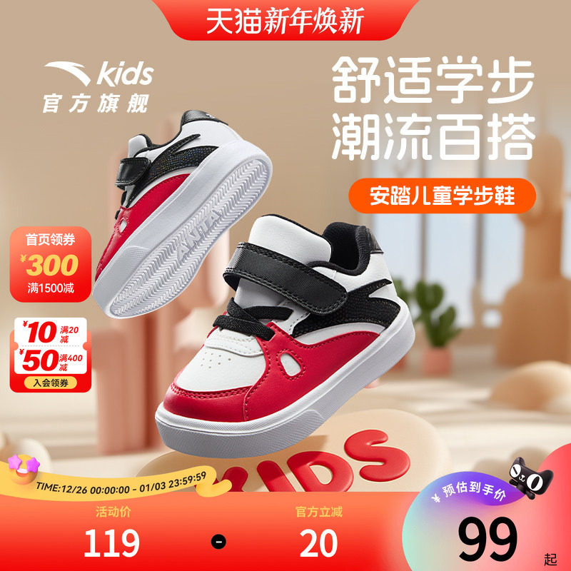 安踏儿童男女婴童板鞋2025透气小白鞋耐磨宝宝学步鞋休闲板鞋