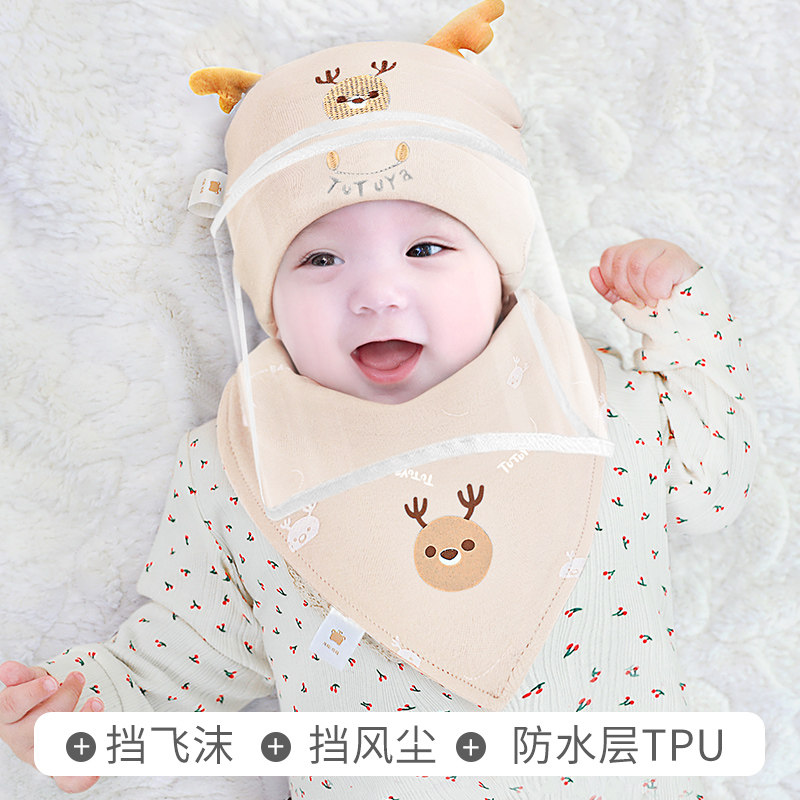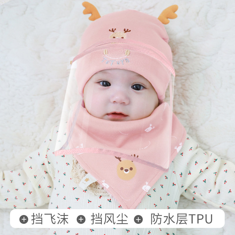 婴儿防护面罩新生儿帽子秋冬季小月龄防飞沫防护帽宝宝外出遮脸帽