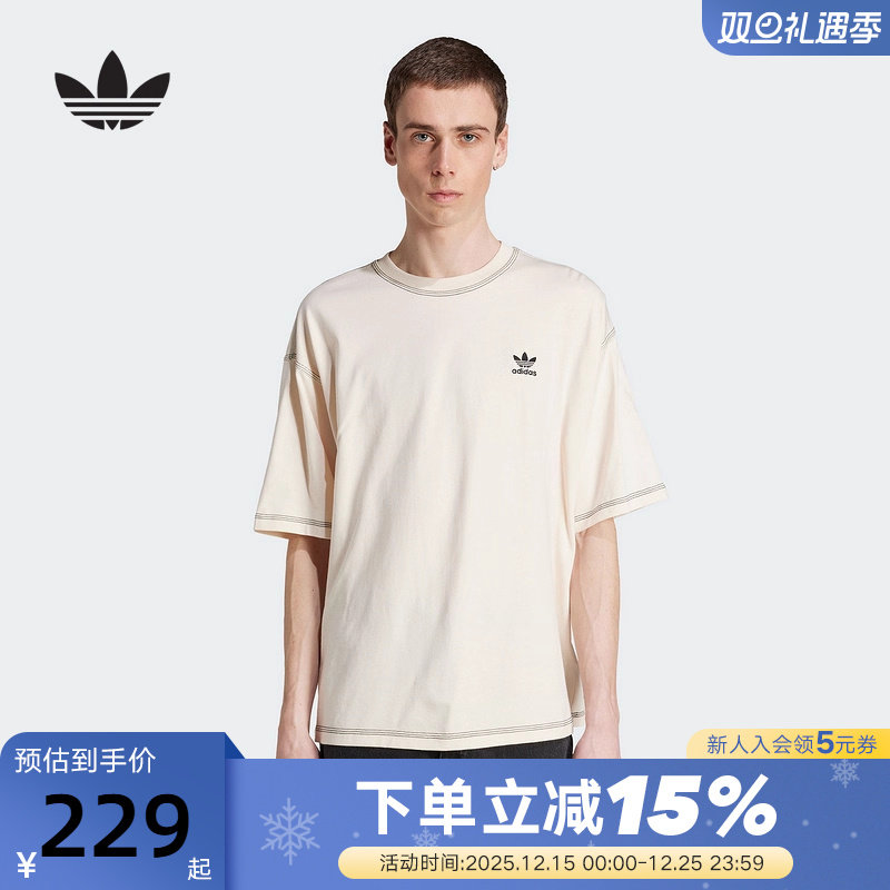 休闲宽松纯棉上衣圆领短袖T恤男女夏季新款adidas阿迪达斯轻运动