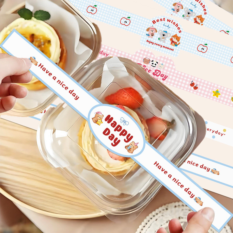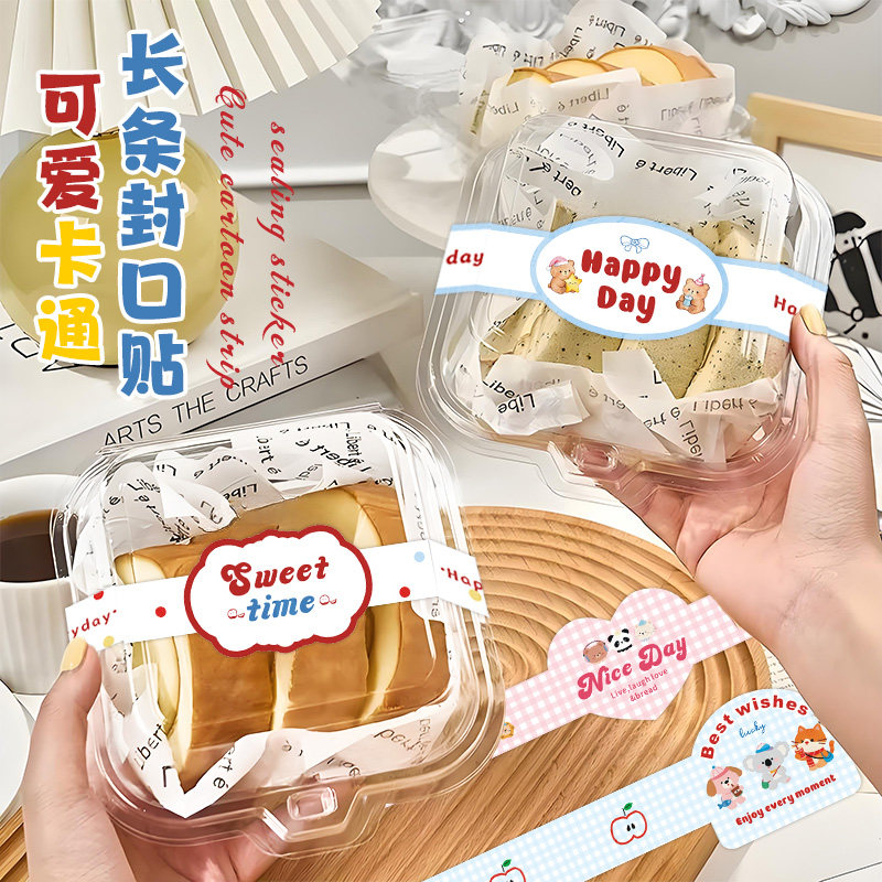 贴纸烘焙长条定制蛋糕甜品一次性打包盒封口贴法式ins装饰腰封条通用外卖餐饮纯手工制作logo标签自粘不干胶