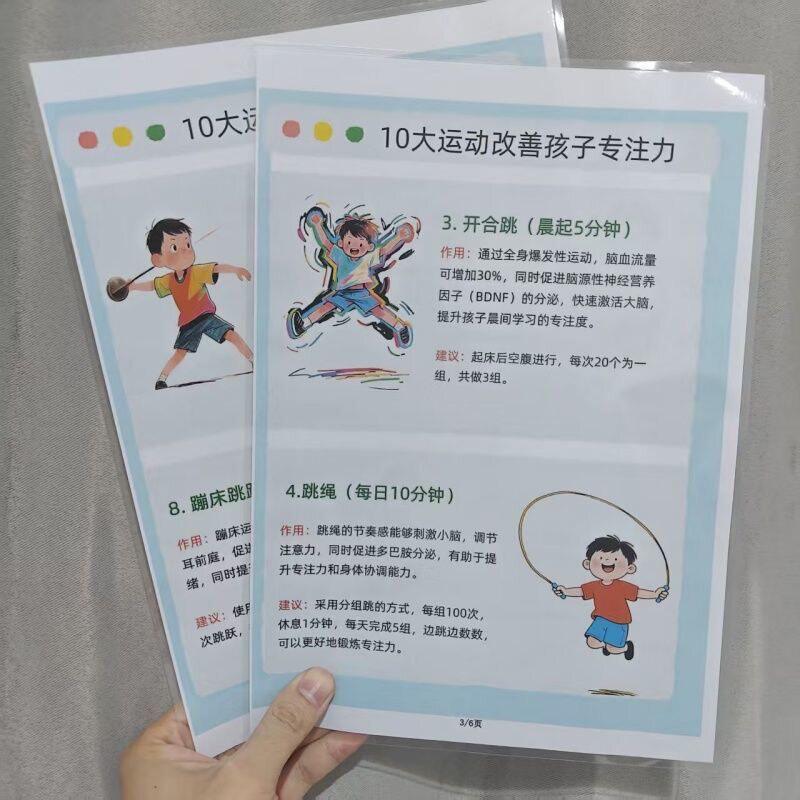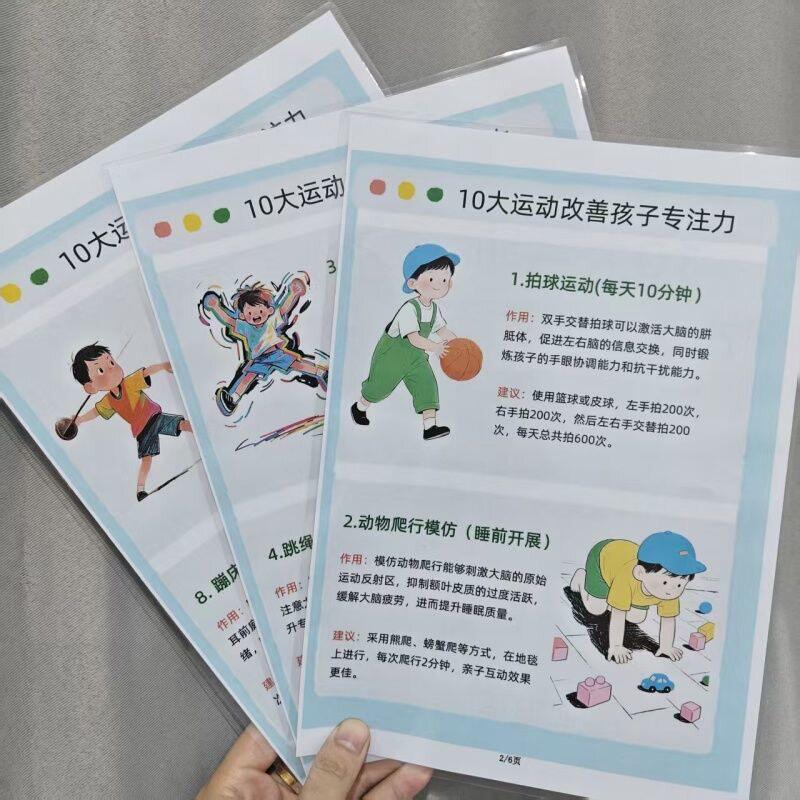 十大运动改善孩子专注力居家运动知识点早教塑封挂图认知卡