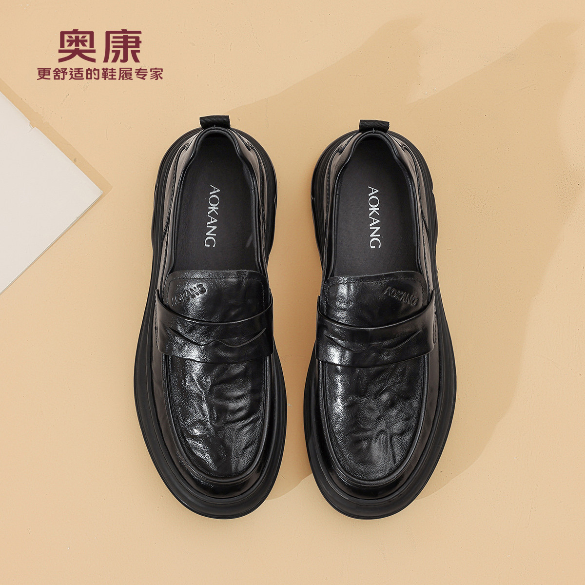 奥康 男鞋2026春季新款真皮一脚蹬厚底乐福鞋舒适百搭休闲皮鞋N