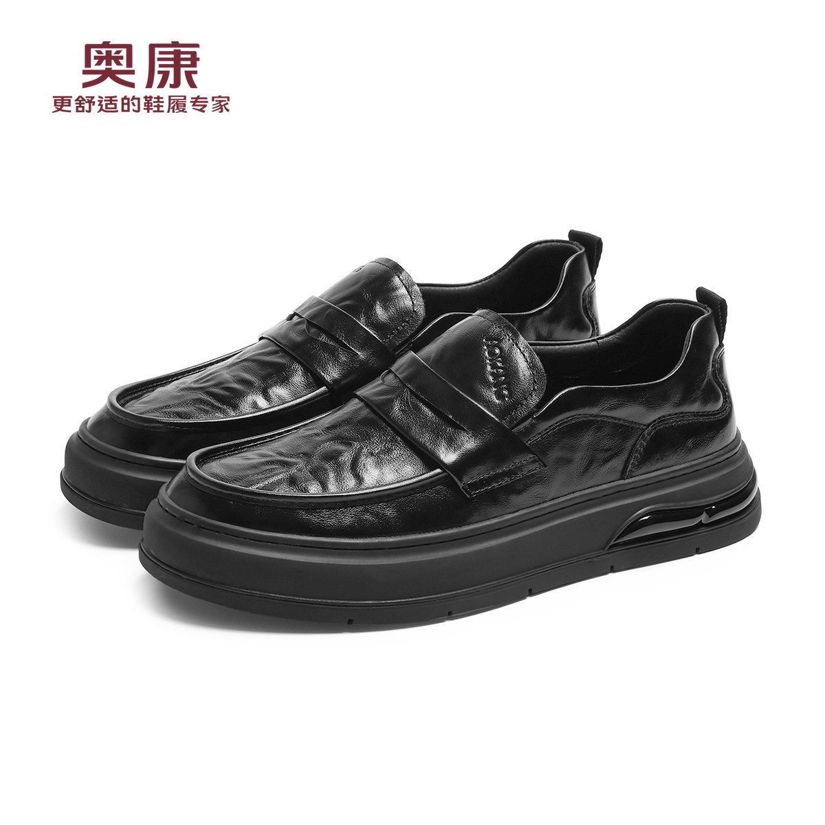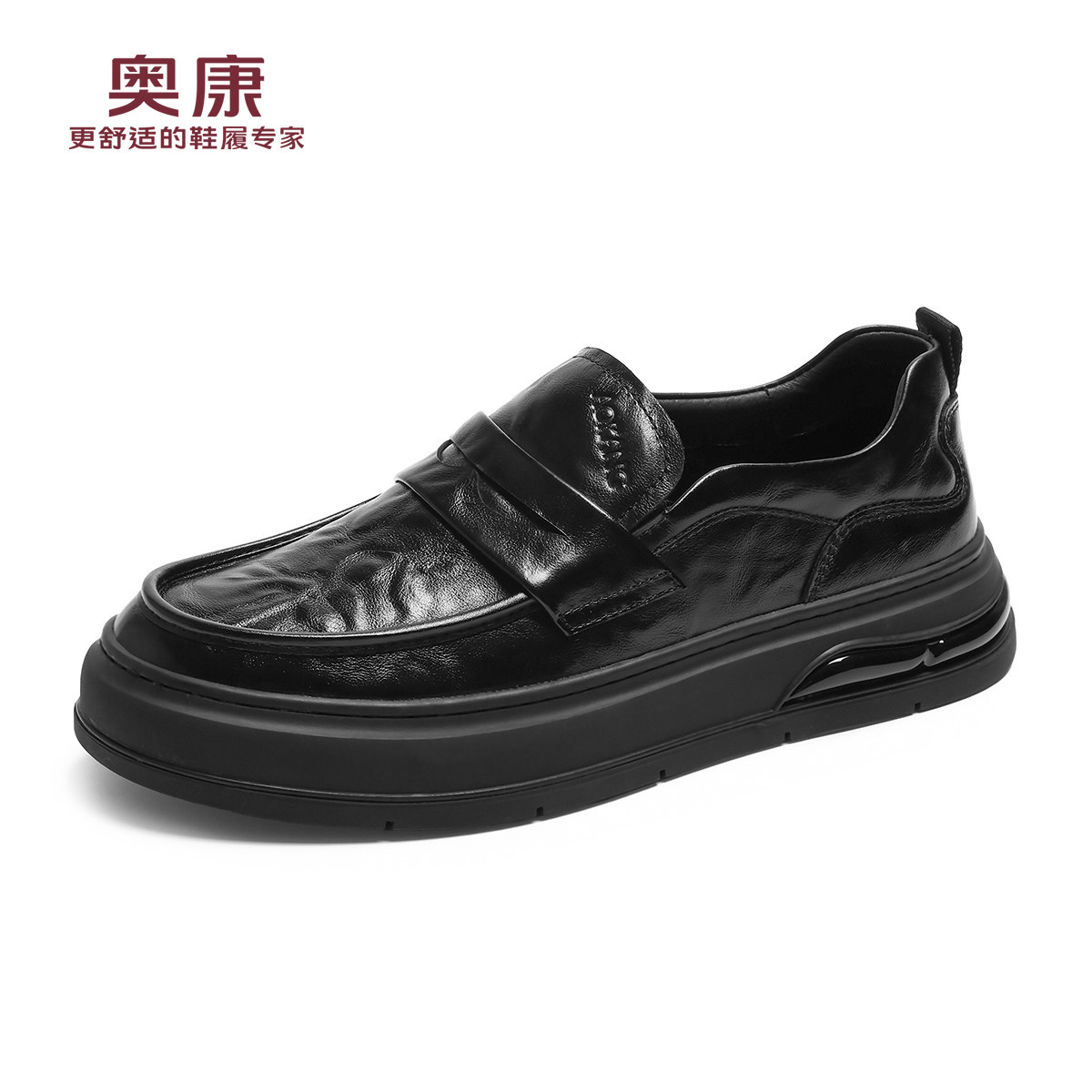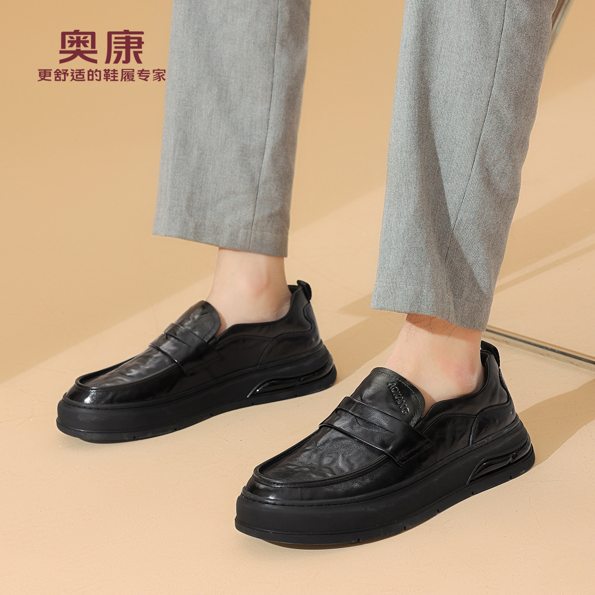 奥康春秋季商务休闲皮鞋男真皮软底乐福鞋舒适一脚蹬套脚爸爸鞋