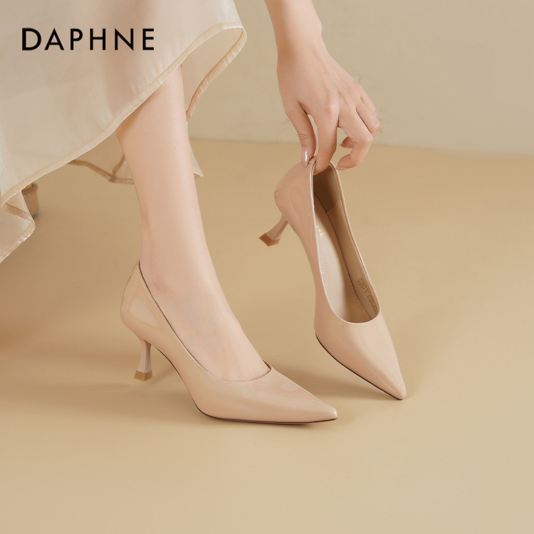达芙妮裸色高跟鞋女2026新款春季法式尖头气质通勤女鞋不累脚单鞋
