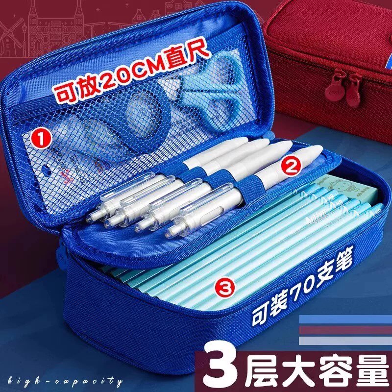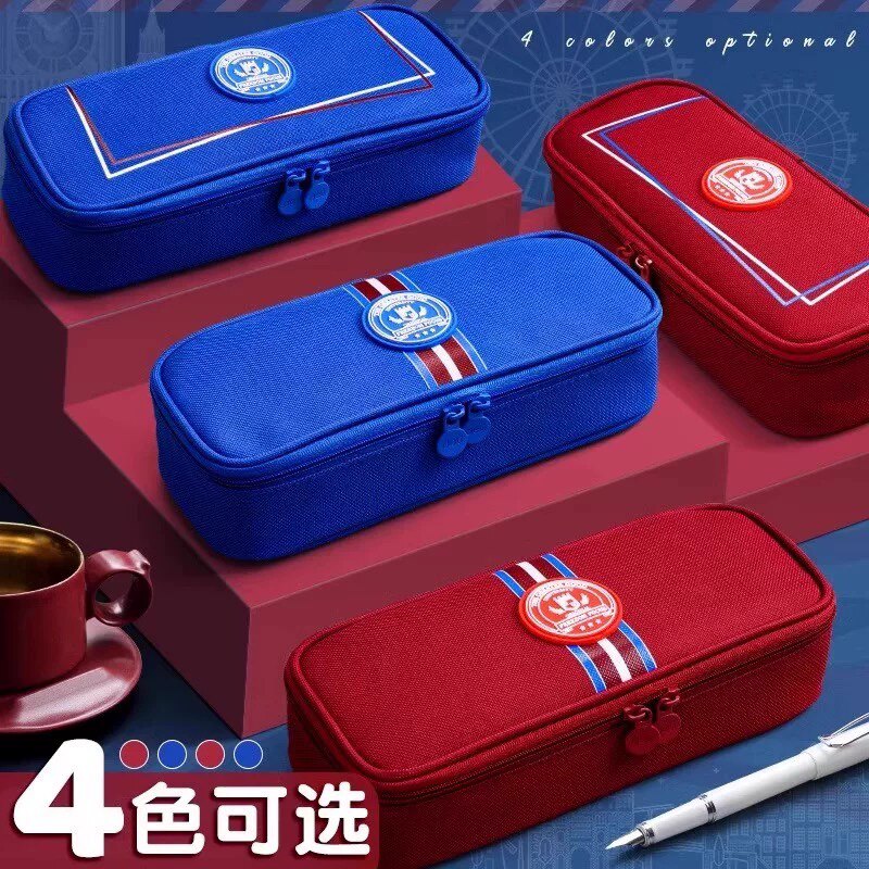 得力学院风笔袋大容量简约牛津布铅笔盒小学生用初高中生文具盒